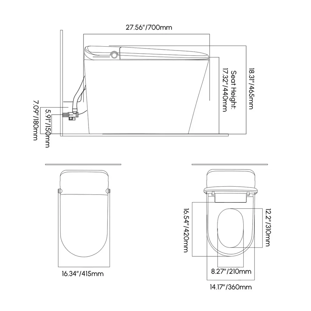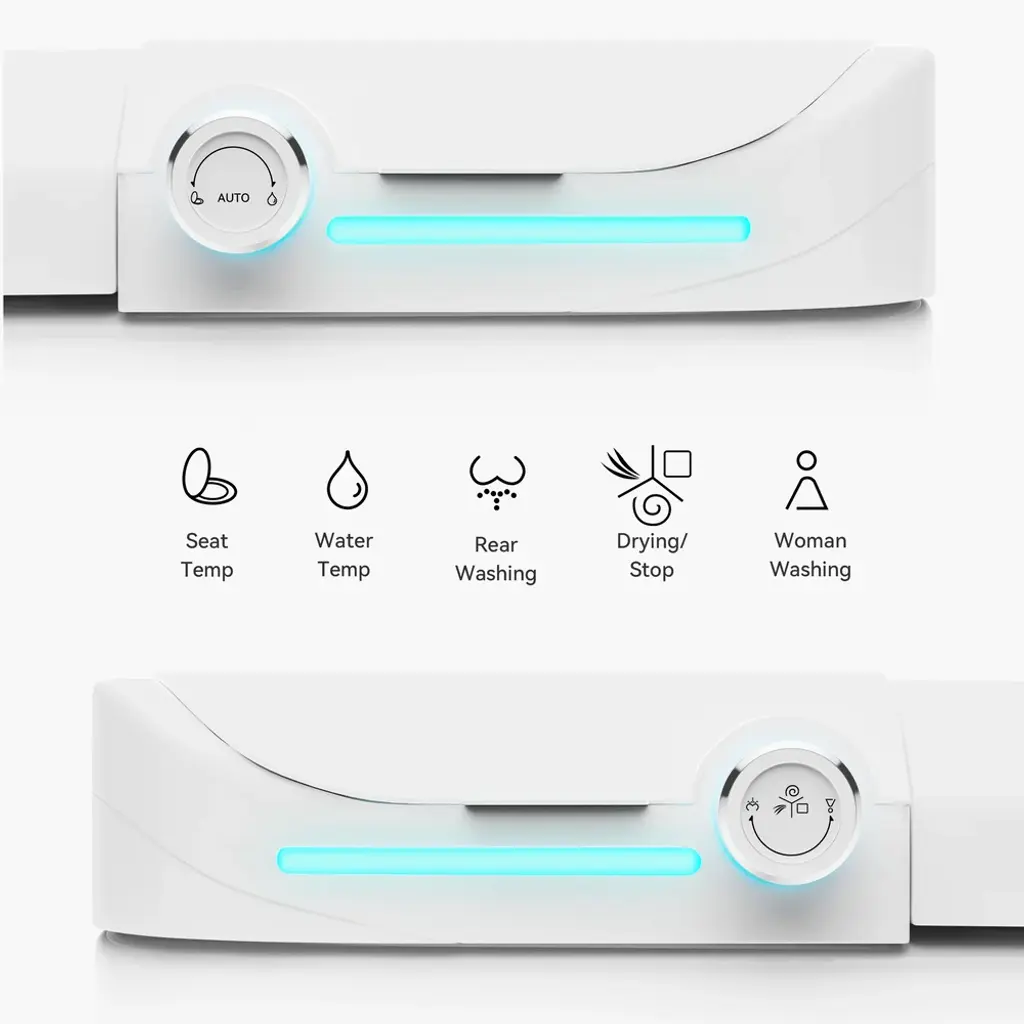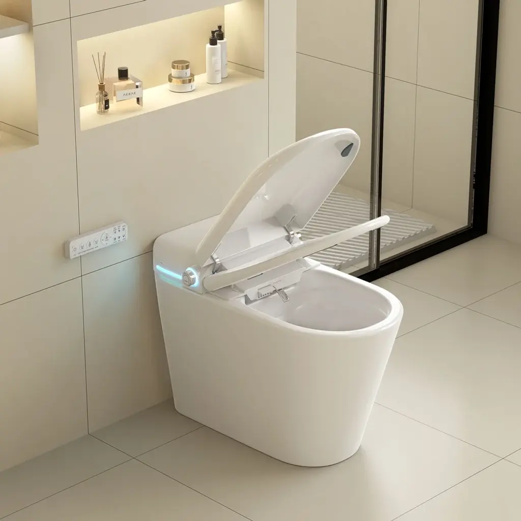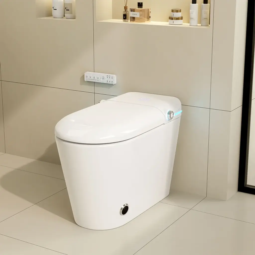 Upgrade your bathroom to a new level of comfort and intelligence with our advanced Smart Toilet. Designed to perform even in areas with low water pressure thanks to its built-in water tank, this toilet combines function, hygiene, and elegance all in one. The rear ambient LED light not only creates a soothing atmosphere at night, but also serves as a convenient nightlight. The stainless steel spray wand features UV sterilization to ensure every use is clean and bacteria-free. Once the lid is closed, the self-cleaning UV process automatically begins for added protection. It also includes an integrated aromatherapy slot – simply open the lid and add a few drops of your favorite essential oil to enjoy a fresh scent every time you use the toilet. With a 17.3" seat height that meets ADA compliance, it ensures comfort and accessibility for adults, the elderly, and people with limited mobility. Perfect for modern living, this smart toilet transforms your bathroom into a space of luxury and wellbeing.