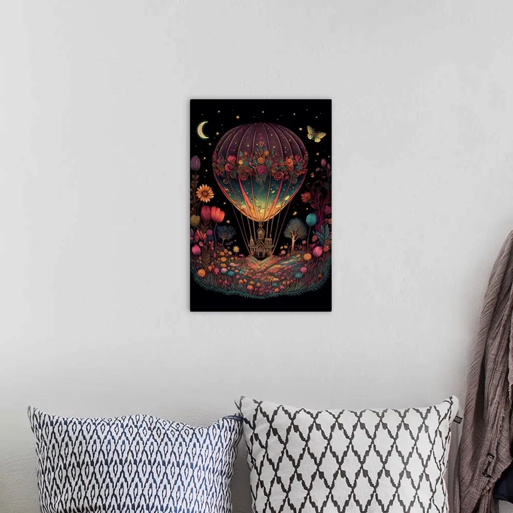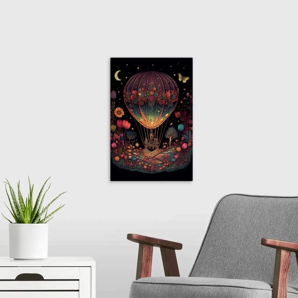 This image by JK Stewart for Duirwaigh Studios of a glowing hot air balloon at night.