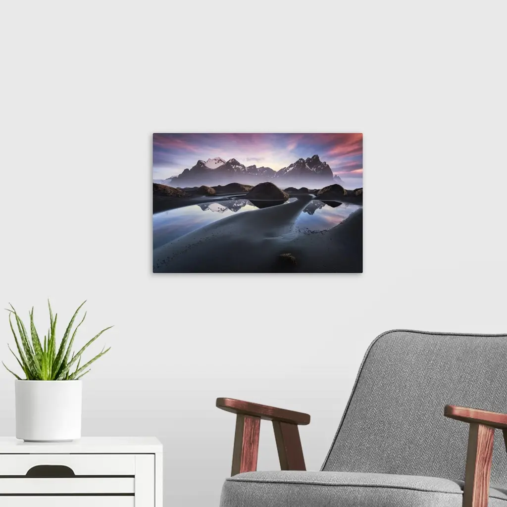 Glowing Vestrahorn wall art for home and office decor. Discover canvas art prints, photos, mural, big canvas art and framed wall art in GreatBigCanvas.com's varied collections.