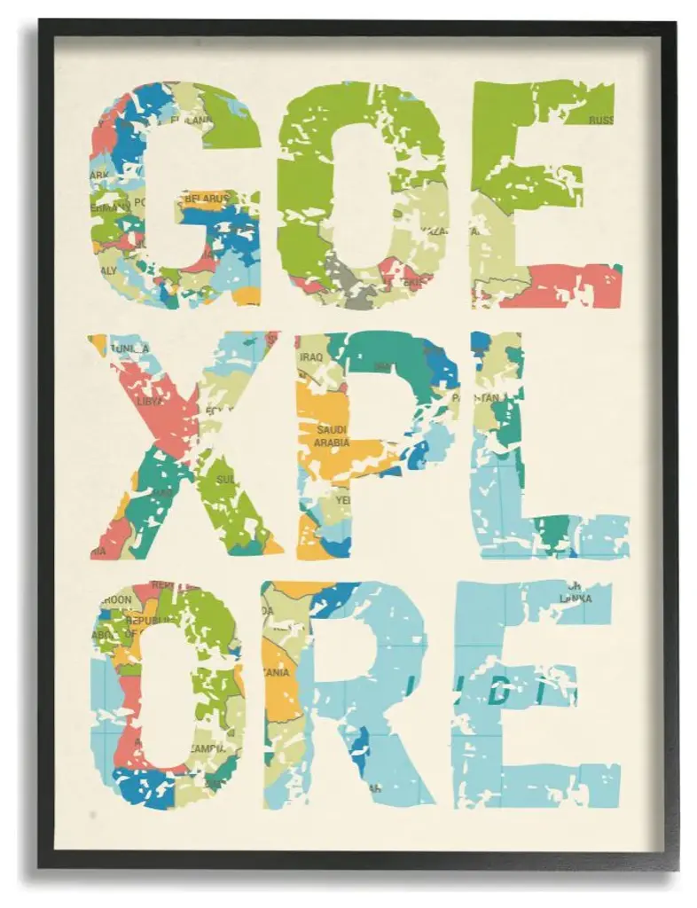 Go Explore Map Text Country Adventure Word Design,1pc, Each 24 X 30