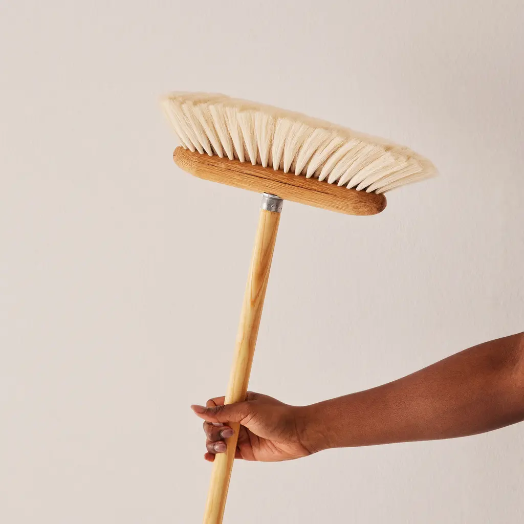 When it comes to cleaning delicate floors (especially tile, marble, and hardwood), you can trust this goat-hair broom by Redecker to handle the task with finesse. German-made, it is crafted entirely by hand using traditional techniques and natural materials. Both the broom head and detachable handle are made from solid oak wood with a beautiful oil finish, and the ultra-soft goat hair easily picks up the finest dust as it gently sweeps the floor. A joy to use around the house. When not in use, always store the broom hanging.