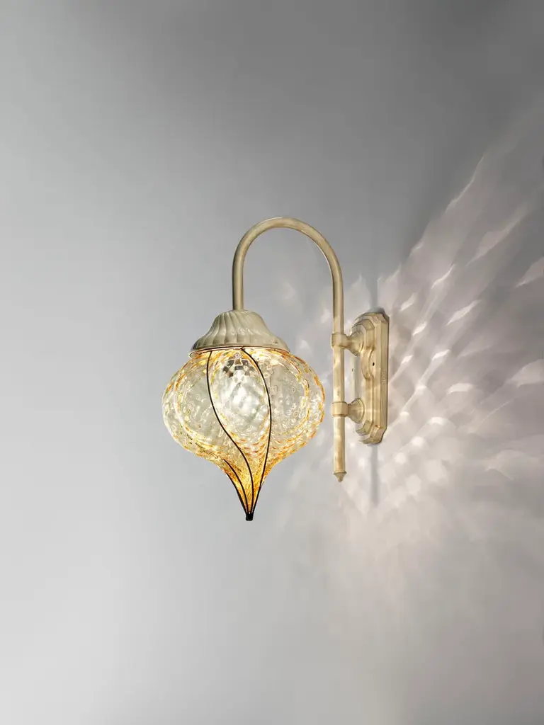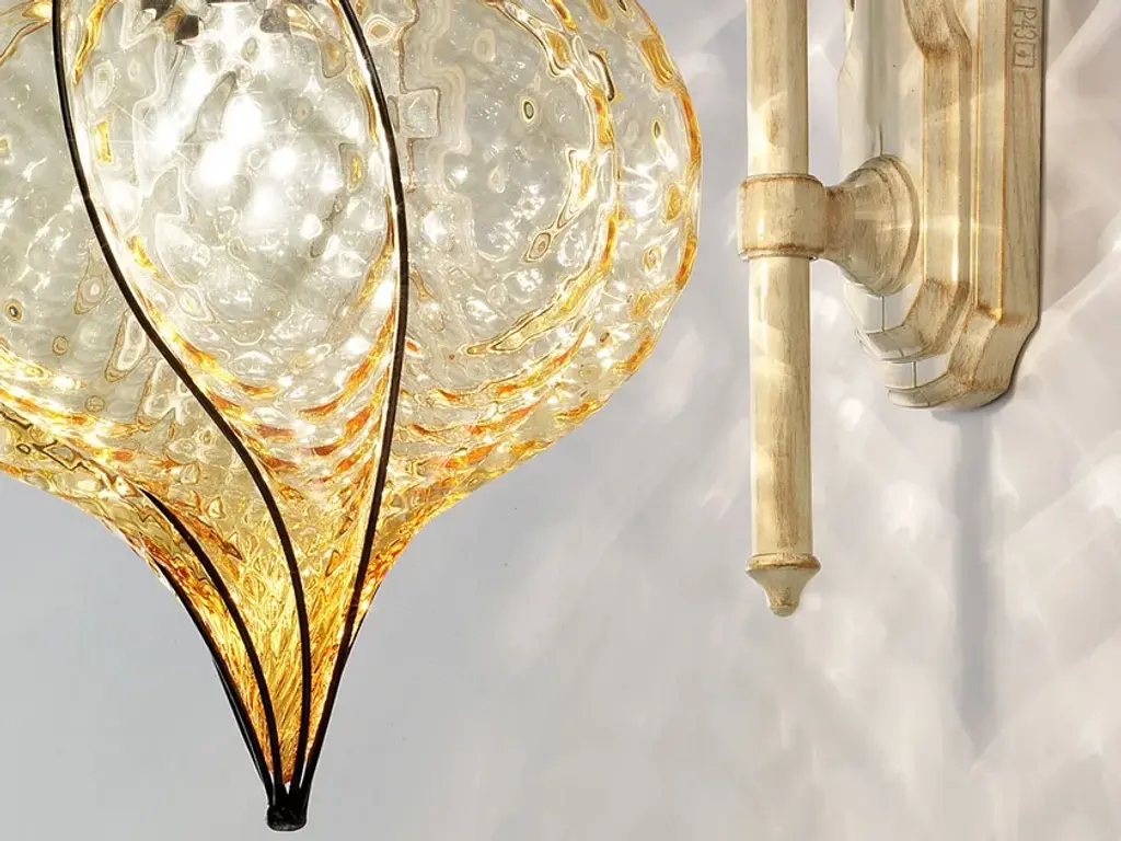 Murano glass wall lamp.The drop, a shape as difficult to obtain for glass masters as it is famous; it is available as a pendant light, applique, table lamp, floor lamp and ceiling lamp.