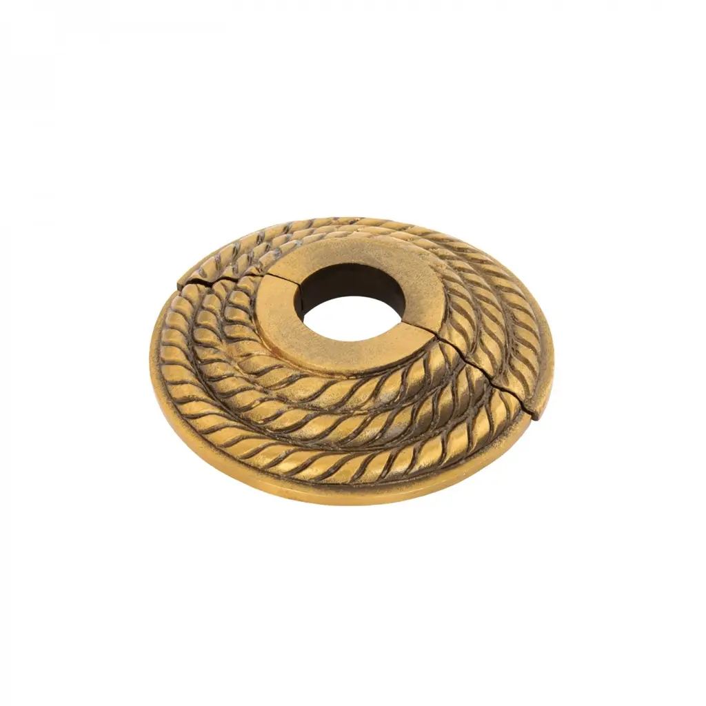 DECORATIVE LACQUERED ANTIQUE GOLD FINISH ALUMINUM RADIATOR PIPE FLANGE COLLARS Cover your hideous pipes with these tarnish resistant Antique Gold finish coated Aluminium Radiator Flanges. The simple and industrial 'Triple Roped' design complements traditional and contemporary decor. These Radiator Flanges will bring your house or store a Loft Retro Colonial charm.FEATURES - Measures 3-1/8 O.D and 7/8 I.D. - Easy to assemble, just snap-in both pieces together around the radiator pipe - Replace old and worn out radiator flanges with these tarnish and rust resistant decorative radiator flanges - Antique Gold finish for a luxurious finish - Maintenance free - Not like those Cheap flanges - Use flanges slightly larger (I.D.) in dia. than your pipe - The IPS ( Iron Pipe Size) is 1/2100% SATISFACTION GUARANTEE These are carefully wrapped to avoid any damage in the transit process. Renovators Supply Manufacturing offers you great value products for your money and a perfect way to spend wisely. We also provide 30 days guarantee with no fee.