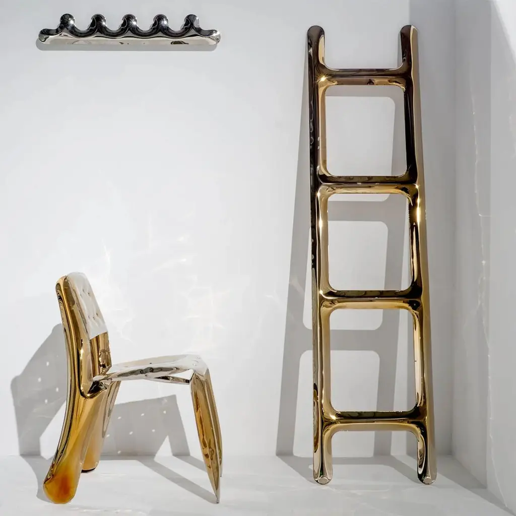 Ladder gold made in polished stainless steelin gold finish, using bending properties of steel sheets.