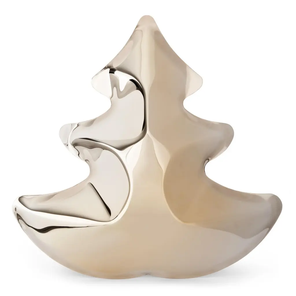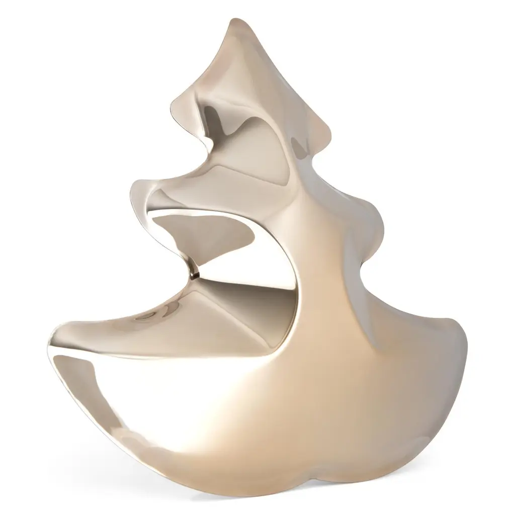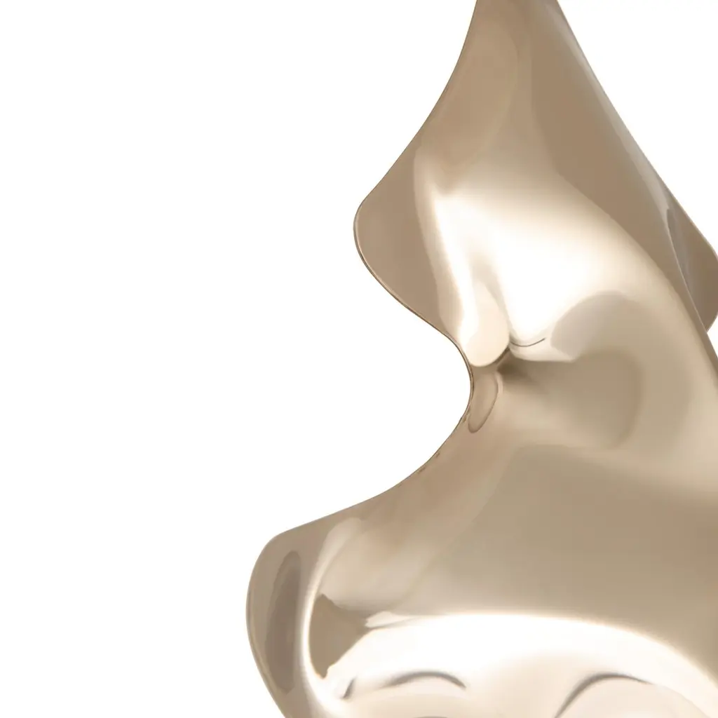 Gold large christmas tree by ZietaDimensions: H 70 x W 70 x D 15 cm.Materials: Flamed gold stainless steel.Different sizes (small) and colors available (blue, red, INOX, gold). Please contact us.Following “less is more” motto, our CHOINKA glows even with no lights. Since Christmas is just around the corner, Zieta studio would like to present a seasonal mirror effect object for this exceptional holiday time. CHOINKA comes in flagship inox finish, flamed gold, rustic red and blue. It owes its unique shape to the highly innovative, patented FiDU technology, allowing to inflate any metal form with pure air. There are two sizes available. Match them and create your own composition or place a single tree that will fit perfectly in a modern interior, a minimalist apartment or an extravagant loft.Zietas main goal is to deliver uniqueness and customization in design and constructions while keeping the production, transport and warehousing innovatively efficient.This is how they imagine the future world: Light, durable structures of customized applications produced on demand out of one-of-a-kind parts, yet efficiently.They use computer controlled production process. Customized pattern, customized form, customized function, one-of-a-kind product and outstanding precision are what they deliver.You will find all of this philosophy reflected in the products. They research, they discover new possibilities, they play with forms and they deliver a beautiful, innovative, surprising outcome to people who love design and who care about the design development.They believe their work is a valuable contribution to the world of design not only by the unique beauty of the forms but most of all by opening ultra-innovative opportunities of forming and new paths for the world of future.