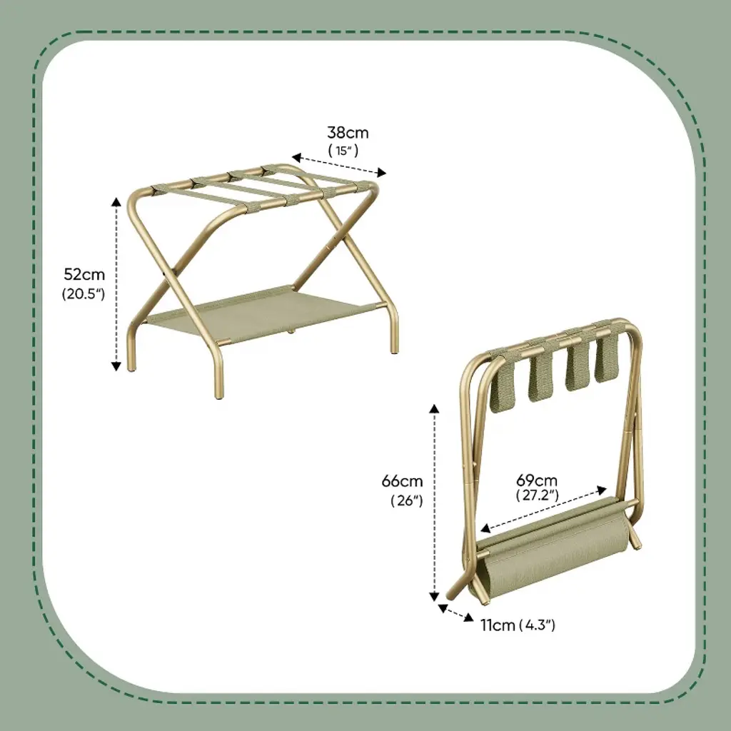 Gold Luggage Racks With Fabric Shelves - Heavy Duty Folding Suitcase Stand Holds 110 Pounds