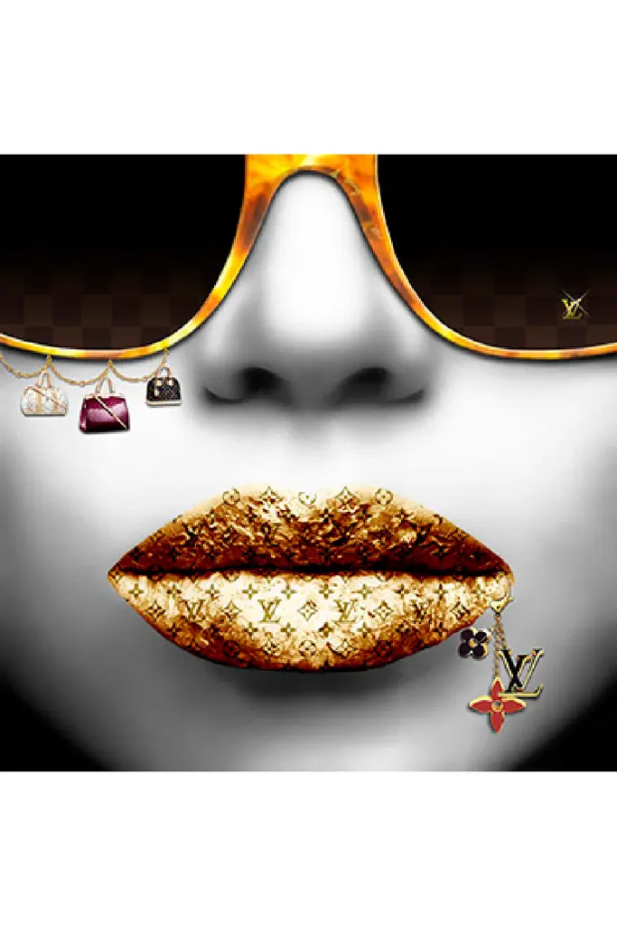 This glittering piece from Andrew Martin emanates the glossy, hyper-realistic images seen in the pages of fashion magazines. In a zoomed-in view, we can see the feminine facial features, decorated sporadically with charm-like accessories and luxuriously textured accessories all in a shimmering golden hue. Production time: 6-8 Weeks