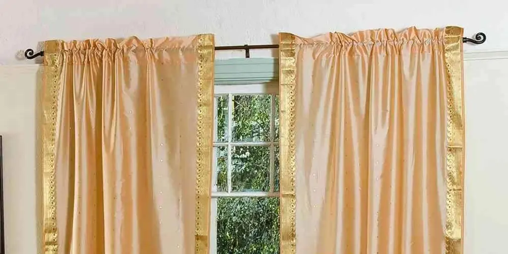 Gold Rod Pocket Sheer Sari Curtain / Drape / Panel - Pair