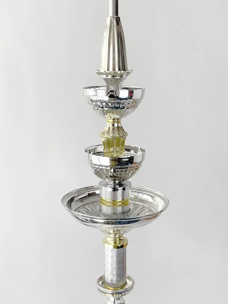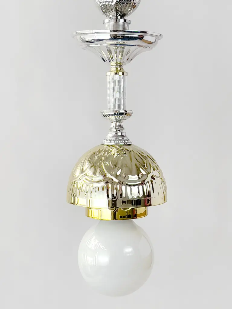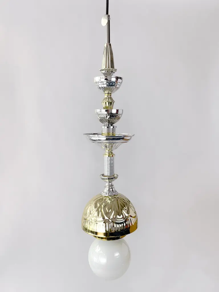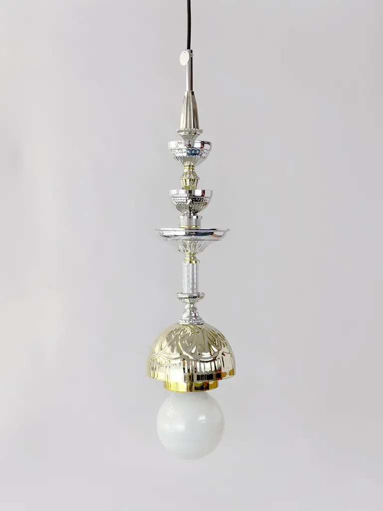 Gold, silver L20 light by FléttaDimensions: D 10 x H 60 cm (Dimensions are variable)Cord: 250 cmMaterials: silver, goldTrophy is a collection of tables, lights, flowerpots and shelves made of old trophies collected from athletes and sports clubs in Iceland. Trophies are a part of big moments in people’s lives, achievements, and memories. They tell a story of countless hours and strenuous exercises. They are made for a moment, when they are lifted up in triumph.Designers Birta Rós Brynjólfsdóttir and Hrefna Sigurðardóttir founded Flétta in 2018 but have been working together since 2014. Both with backgrounds in product design from Iceland University of the Arts, they bring a high degree of conceptual and process innovation to their works using mundane or often overlookedproducts and materials. Their practice revolves around responsible design, utilizing reused materials and local production with evident respect for craftsmanship and storytelling.All our lamps can be wired according to each country. If sold to the USA it will be wired for the USA for instance.