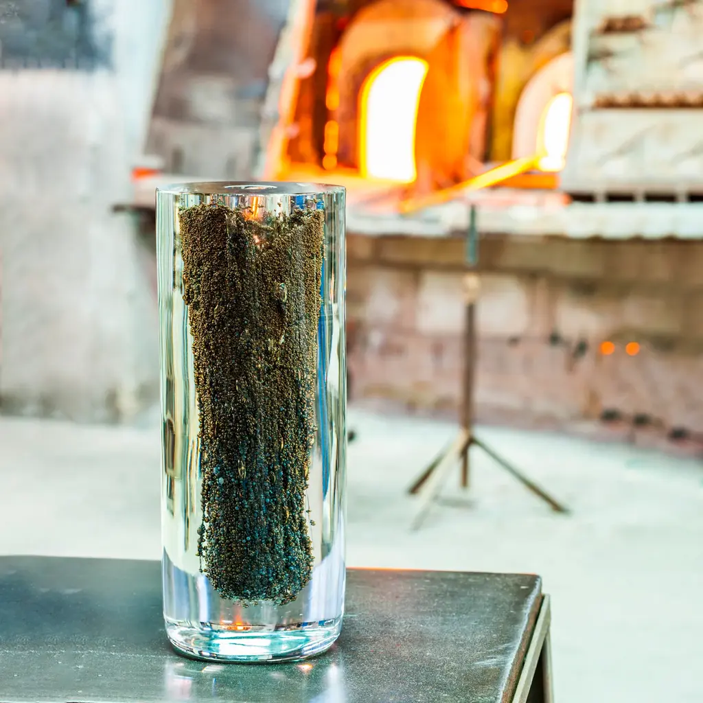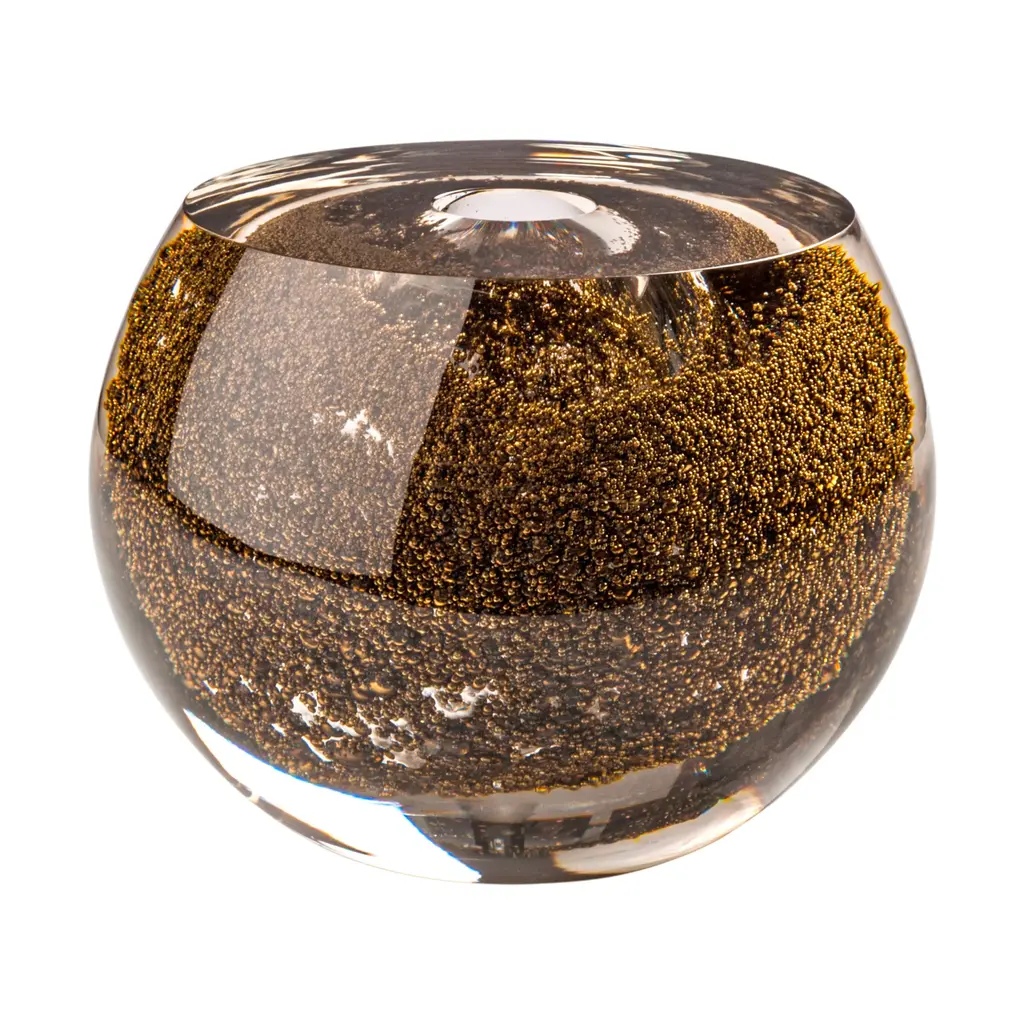 A breath, then another. A movement, then another. A breath, then a Pulpito. This thick glass has a soul that moves with the light. Tiny metal decorations, inserted into the transparent glass, become precious, living, pulsating light.