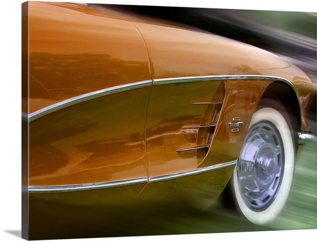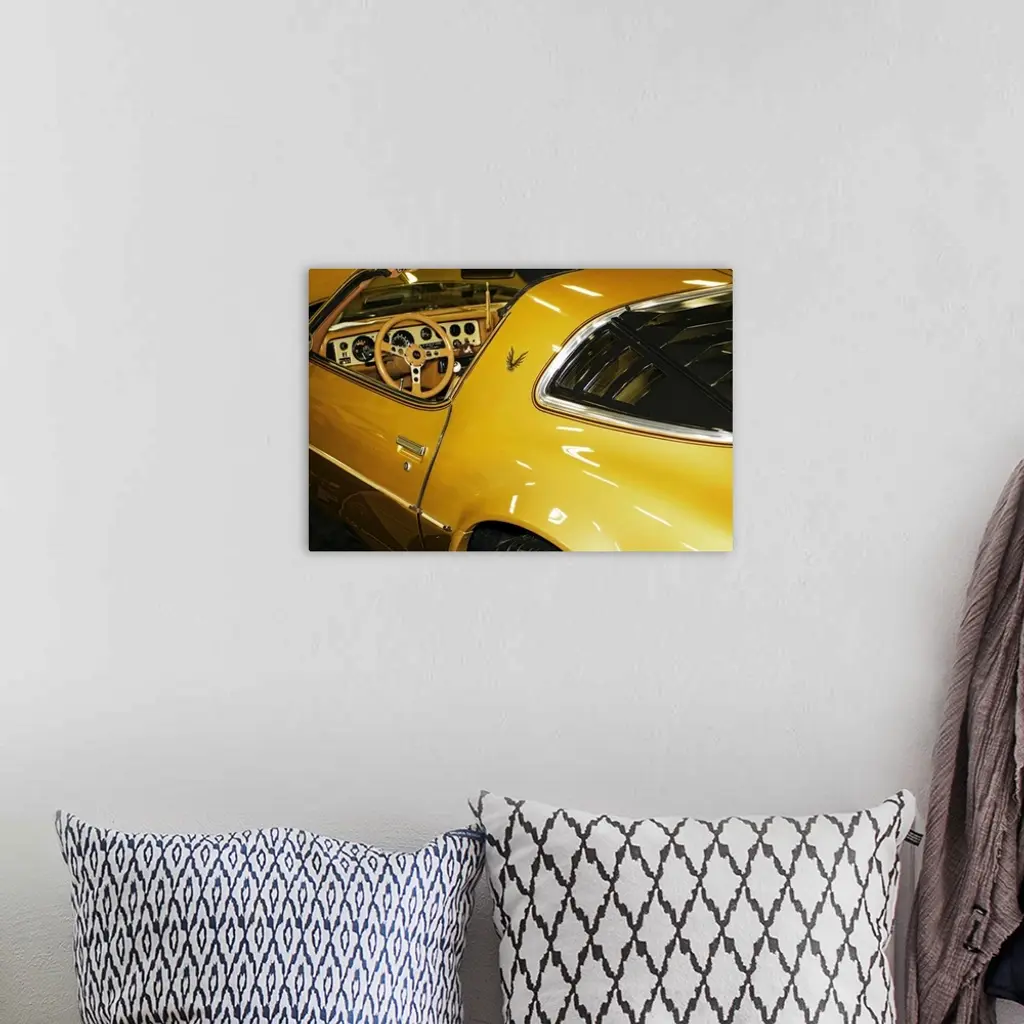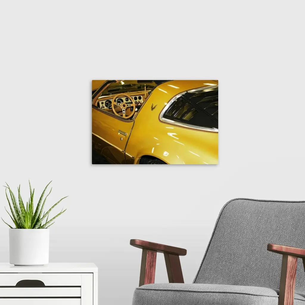 Fine art photograph of a vintage car. The interior and steering wheel are visible.