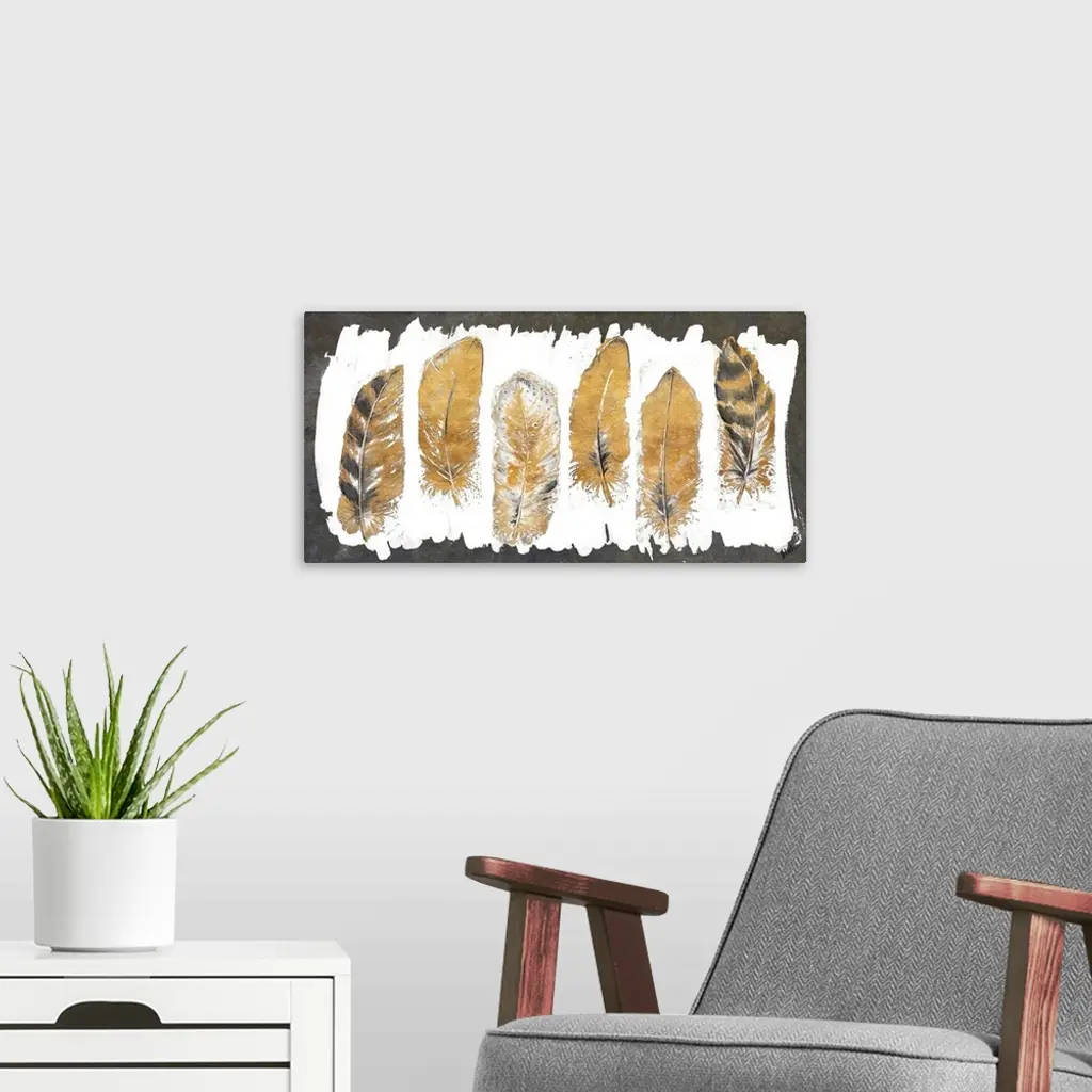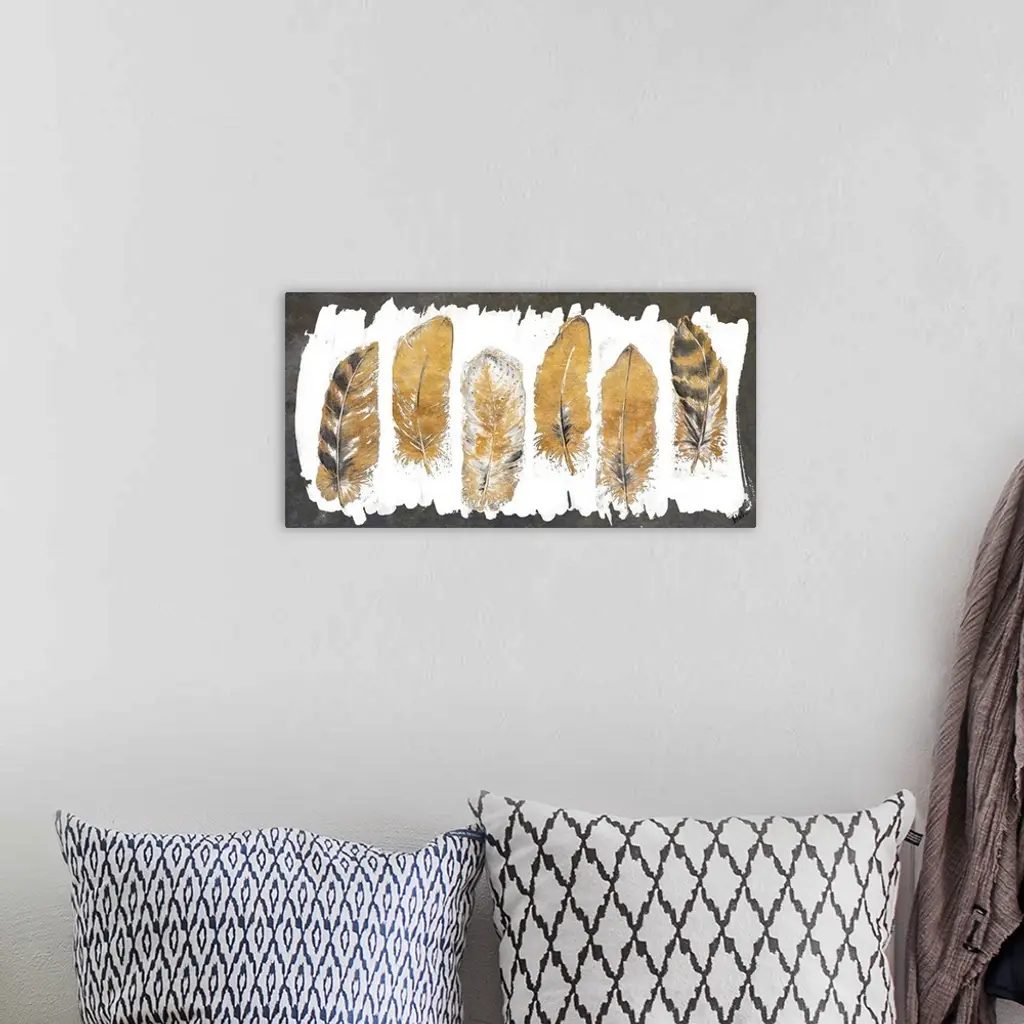 Gold Watercolor Feathers wall art for home and office decor. Discover canvas art prints, photos, mural, big canvas art and framed wall art in GreatBigCanvas.com's varied collections.