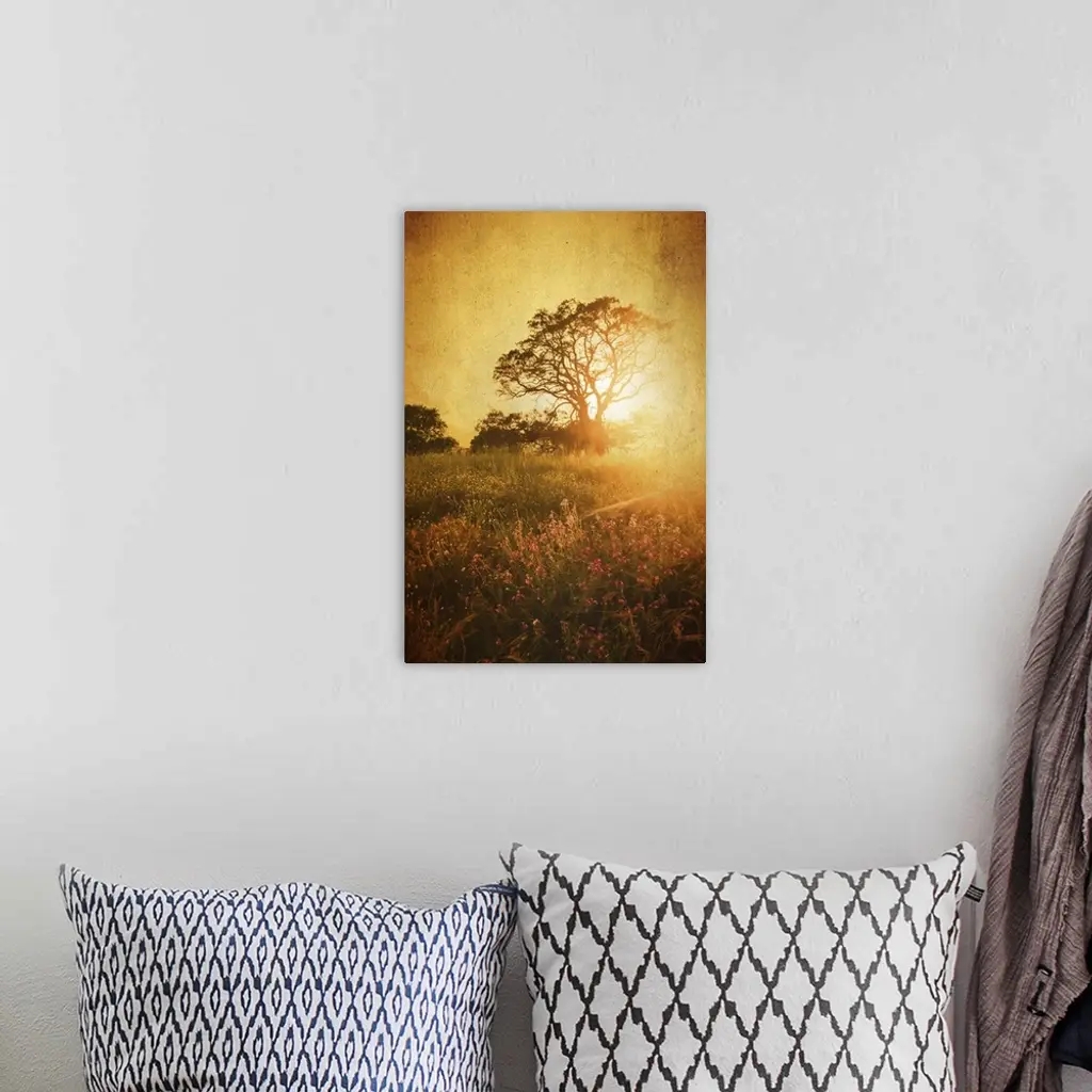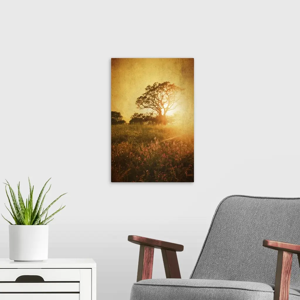 Sunset with tree in meadow