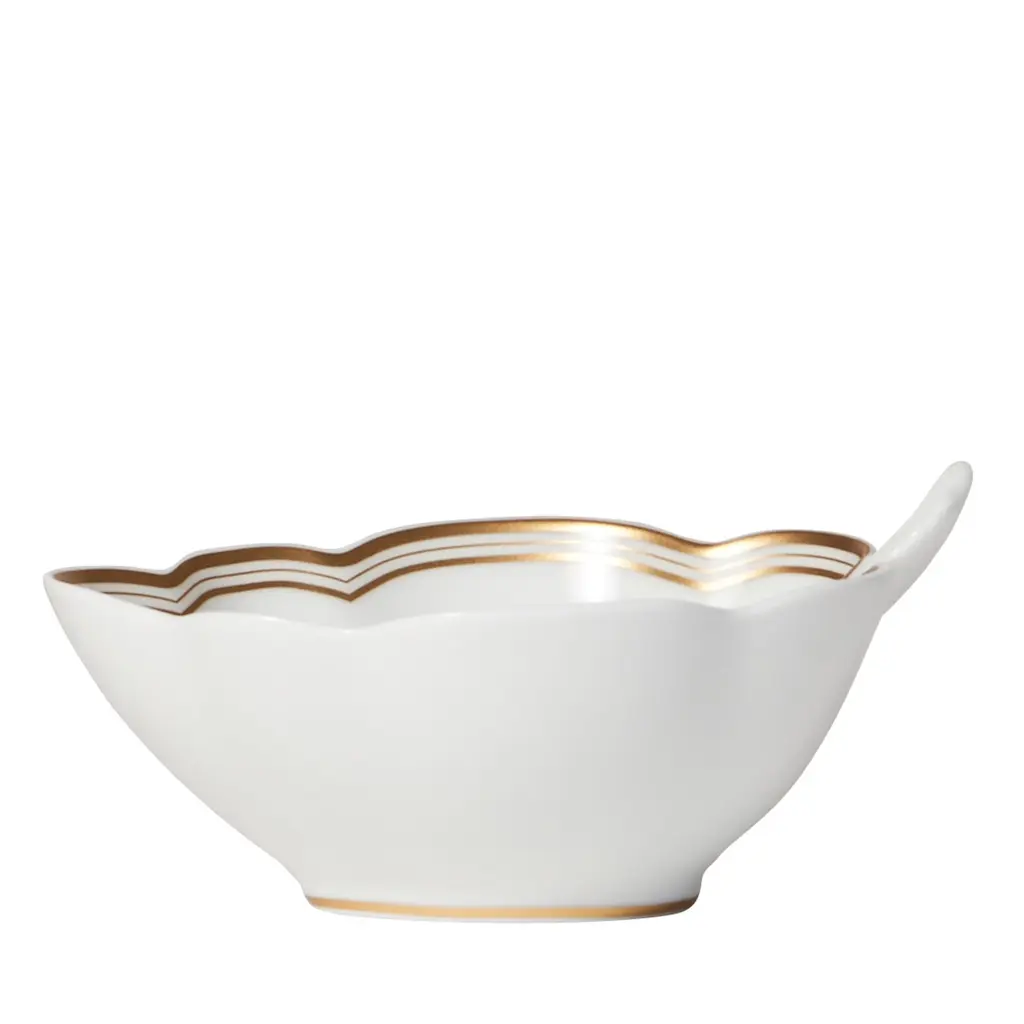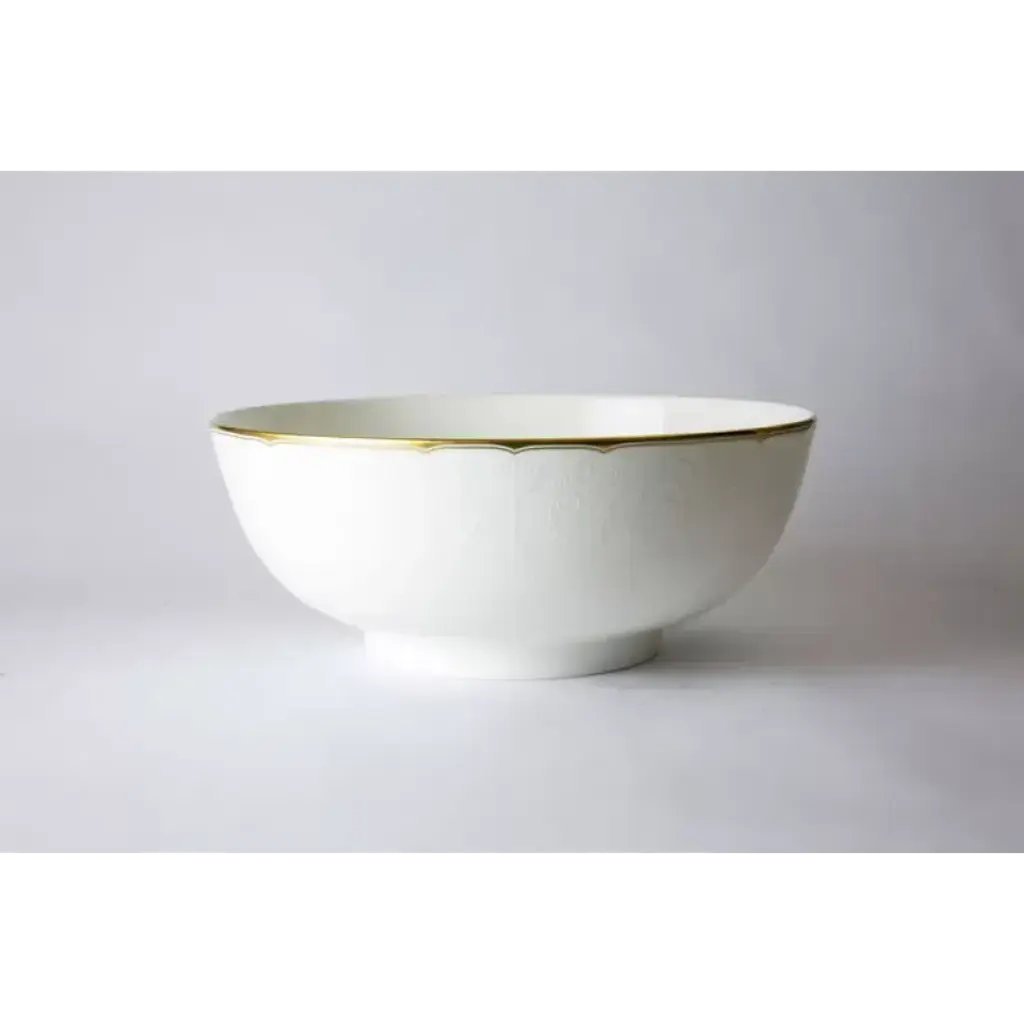 Created for Count Hadik in the early twentieth century, the classic style of Golden Edge celebrates this noble Hungarian family. Janos Hadik served as the president of Herend Porcelain from 1926 to 1933. Hand painted in Hungary. Now the biggest porcelain manufactory in Europe, Herend was founded in 1826 to produce earthenware in the small Hungarian village for which it was named. At the time, Hungary was flooded with low-cost pottery, but in 1839, Mor Fischer became the Manufactory’s new owner and he decided to focus on producing dinnerware replacement pieces for Europe’s royal families to complement their valuable porcelain patterns from Germany and the Far East. As his client base grew, Fischer commissioned his artists to begin designing dinnerware patterns of their own. Queen Victoria’s 1851 purchase of a large set for Windsor Castle was a milestone, setting the stage for aristocrats throughout Europe to clamor for Herend in their estates. In the 1850s, Herend added meticulously-crafted figurines to its creations. Herend’s trademark fishnet pattern, which is widely recognized and prized as Herend’s signature design, started in 1858 when an artist who was intrigued with a Chinese plate’s fish scale design painted it onto a rooster figurine to imitate feathers.