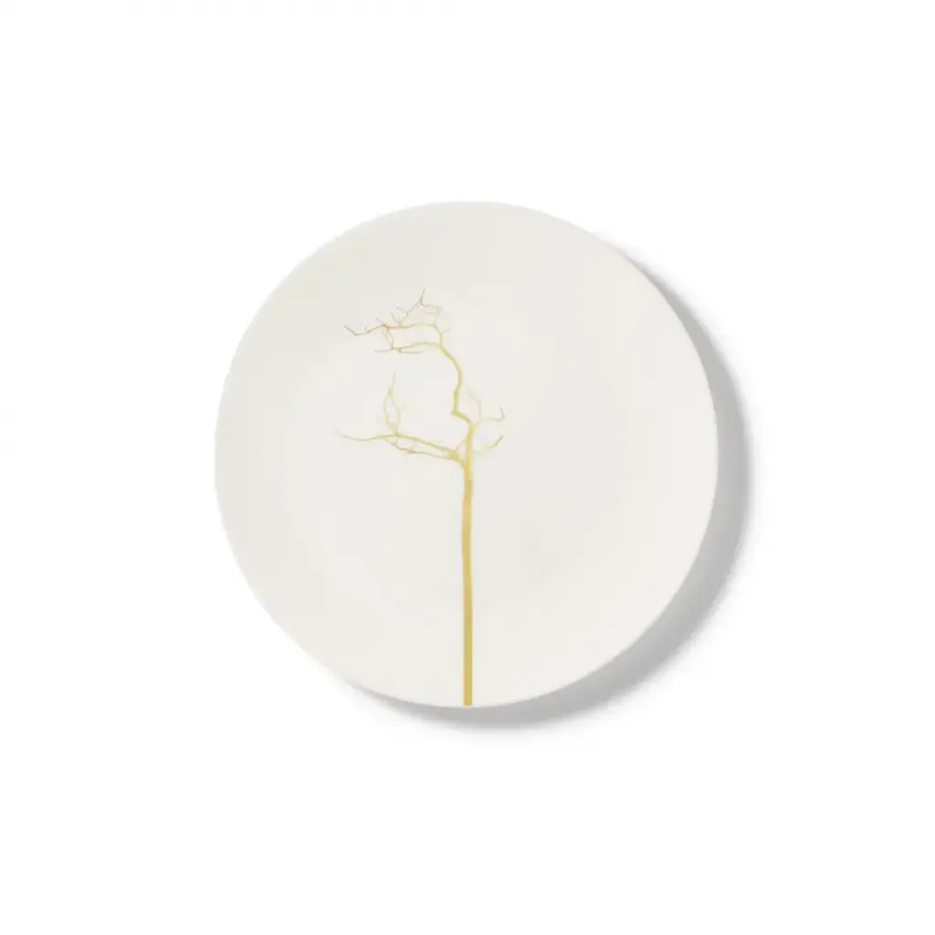 Inspired by nature, modern and individually staged. Various Golden silhouettes of trees branch out tenderly over cups and plates, seem to be natural and abstract at the same time. The trunk continues over the rims of the cups and develops to a graphic element.