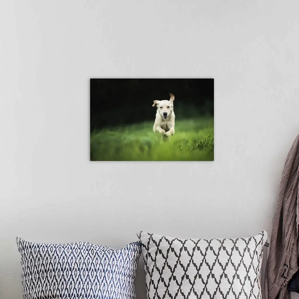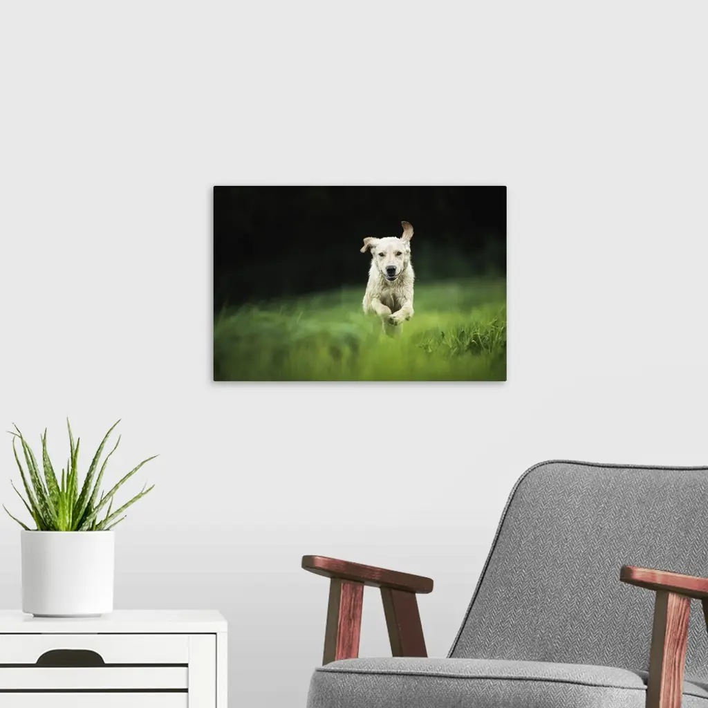 Golden Labrador Running Through A Field, United Kingdom, Europe