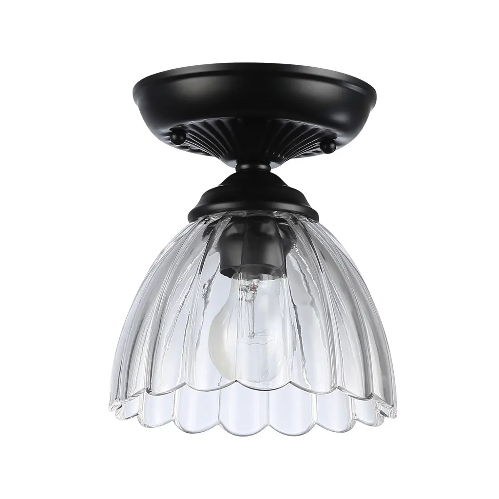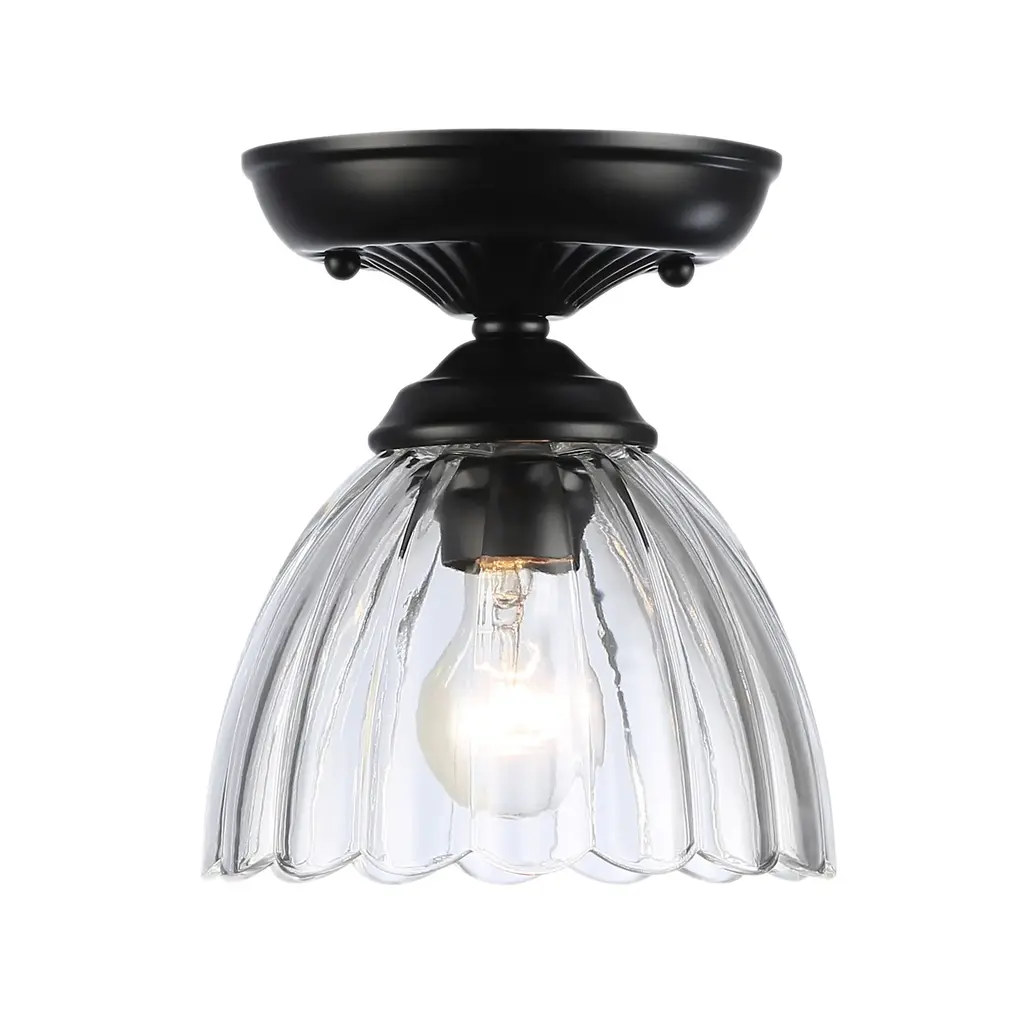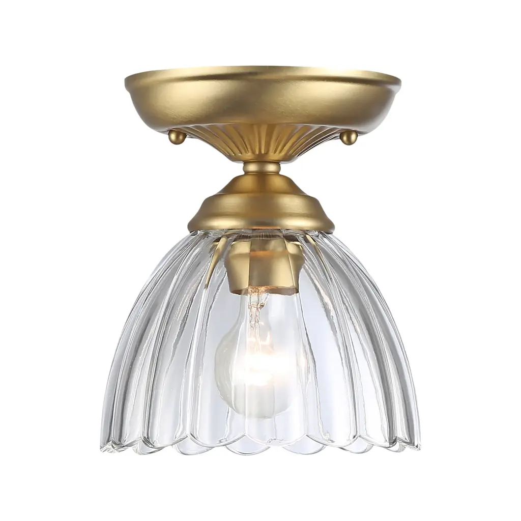 The traditional forms of the Audra collection have an updated, nostalgic look. Beautiful glass elements take center stage in the series, drawing eyes to the flared scalloped edges of the inverted glass bowls. Delicate patterns in the canopies echo the look of the decorative shades. Choose between select fixture types and finishes to create your desired look. Add these vintage-inspired, damp-rated fixtures anywhere in your home where you need bright light and want iconic style.Features:Dimensions:Electrical Specifications: