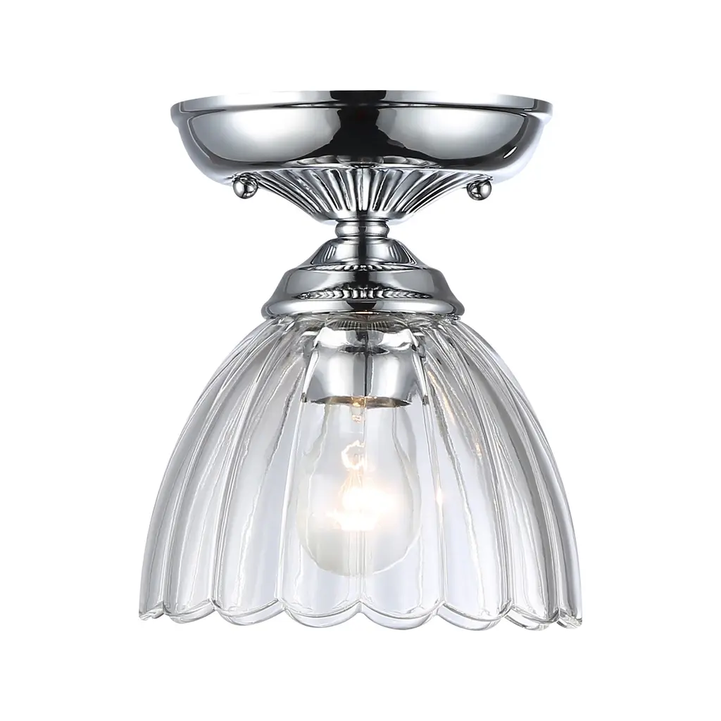 The traditional forms of the Audra collection have an updated, nostalgic look. Beautiful glass elements take center stage in the series, drawing eyes to the flared scalloped edges of the inverted glass bowls. Delicate patterns in the canopies echo the look of the decorative shades. Choose between select fixture types and finishes to create your desired look. Add these vintage-inspired, damp-rated fixtures anywhere in your home where you need bright light and want iconic style.Features:Dimensions:Electrical Specifications: