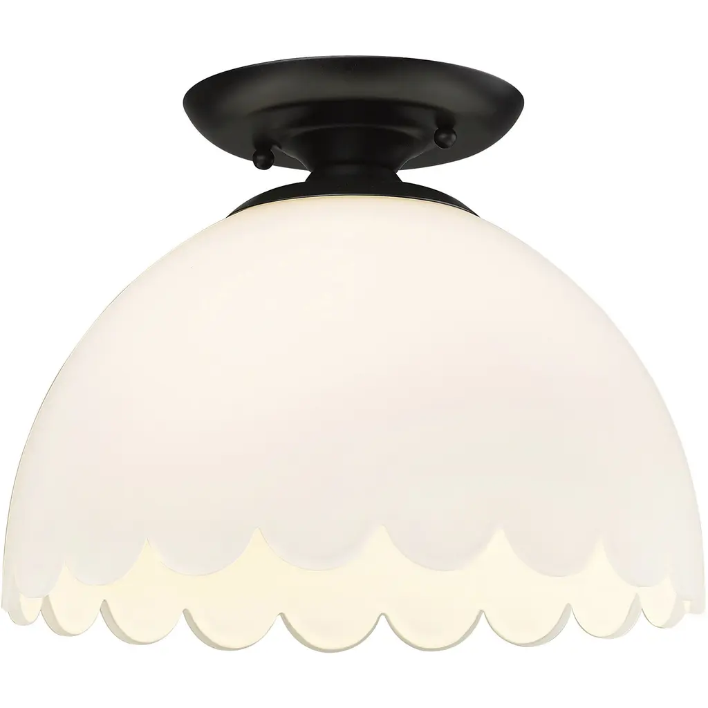 Golden Lighting Dorinda 1-light Semi-flush In Brushed Champagne Bronze With Opal Glass