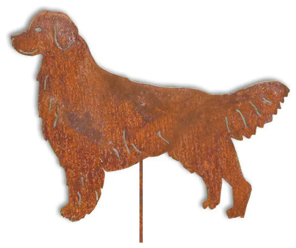 This handcrafted Golden Retriever Garden Stake or Wall Art will become a decorative favorite. A charming way to add some fun to your home or garden decor.Size: 22 Inches wide X 25 Inches tall (Size includes the stake)Stake or Wall Hangar attached• Also Available - Giant oversized Dog Breed garden stake or Wall Hanging(size proportionate under 48 x 40 inches) Please contact us for details before you purchase your item. • Please contact me before you buy for shipping prices on multiple orders.• Only rustic and black colors are in stock, all other colors are made to order.• Please Note: The rustic patina varies on each piece (We rust each piece individually). CUSTOM ORDERS ARE ALWAYS WELCOME!Made in the USA