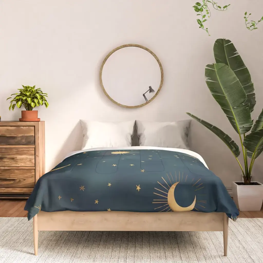 Golden Sun Moon And Stars Radiating The Universes Light Within You Comforter