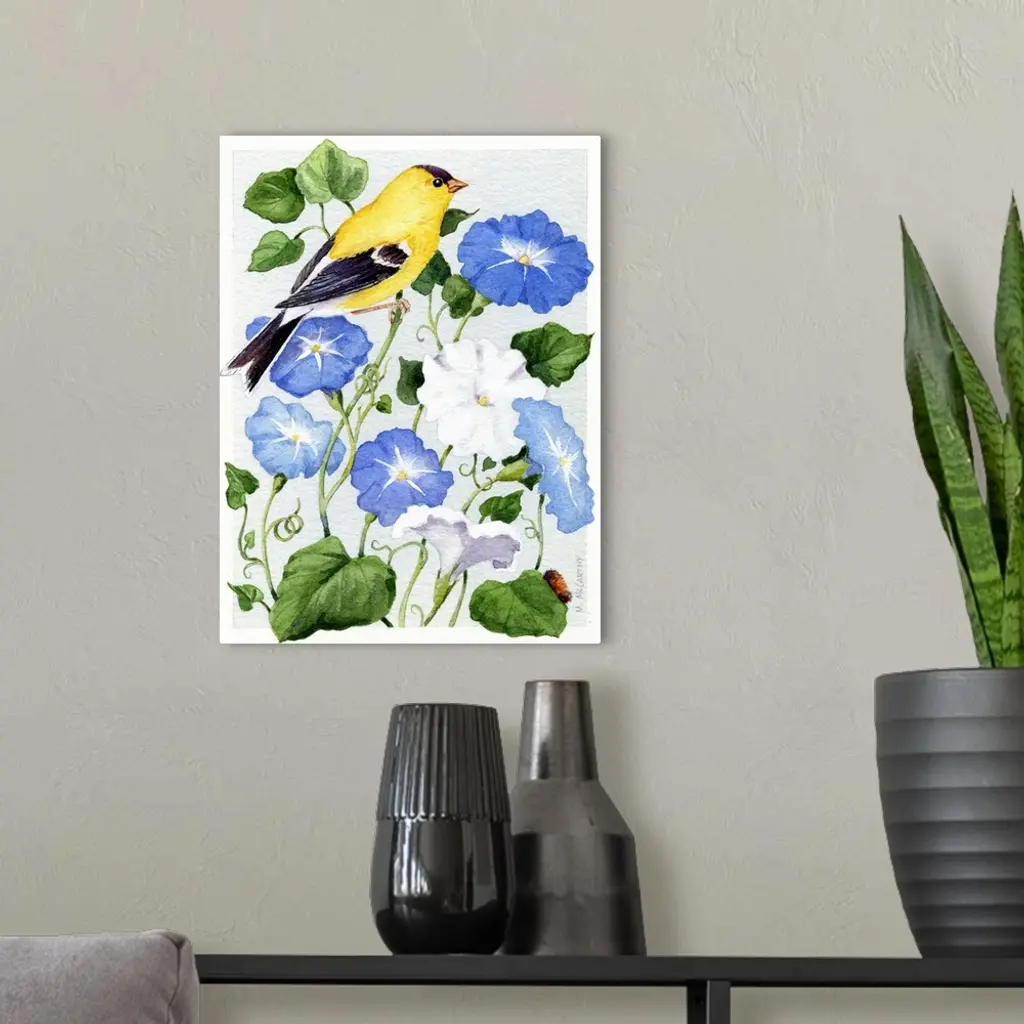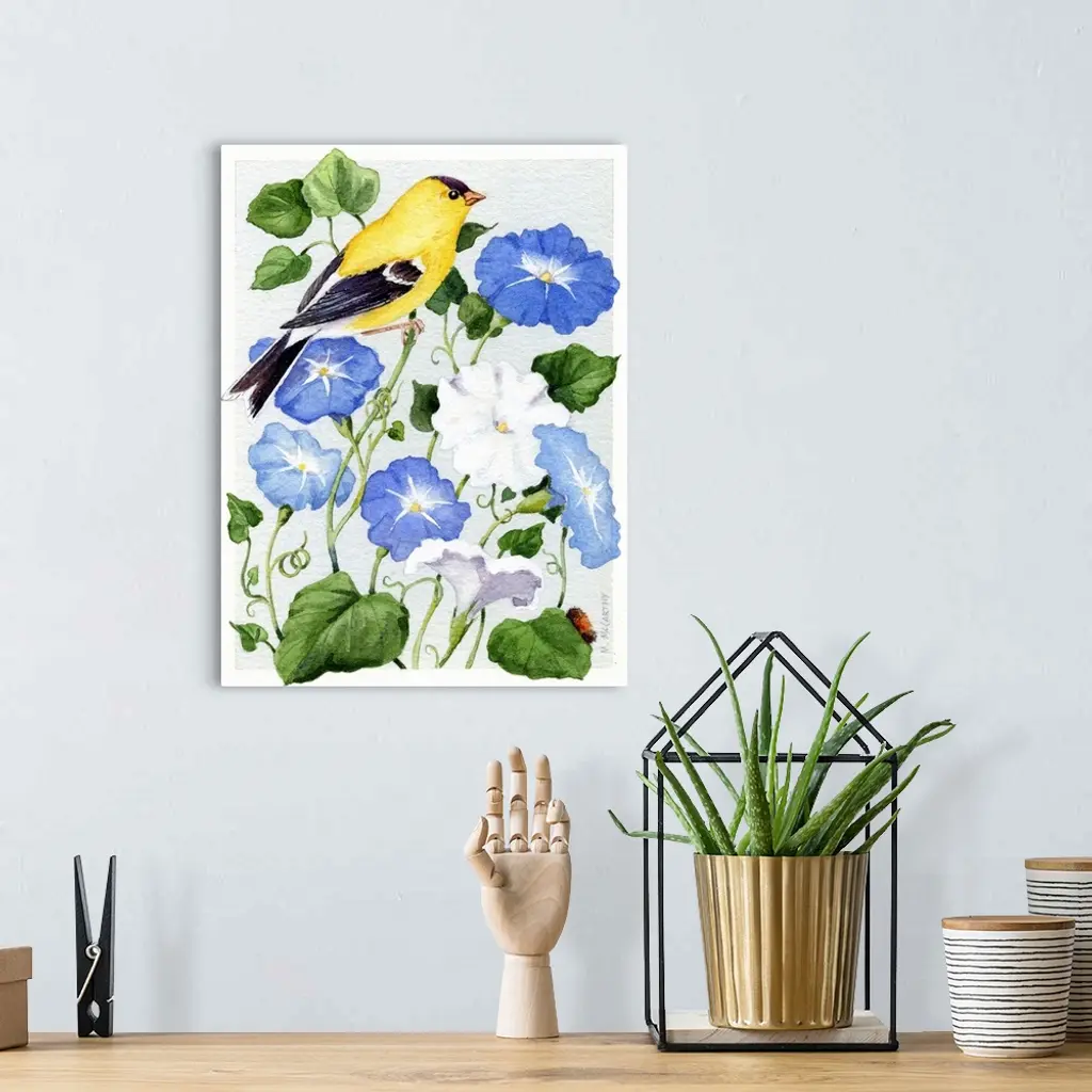 Goldfinch and Morning Glories wall art for home and office decor. Discover canvas art prints, photos, mural, big canvas art and framed wall art in GreatBigCanvas.com's varied collections.
