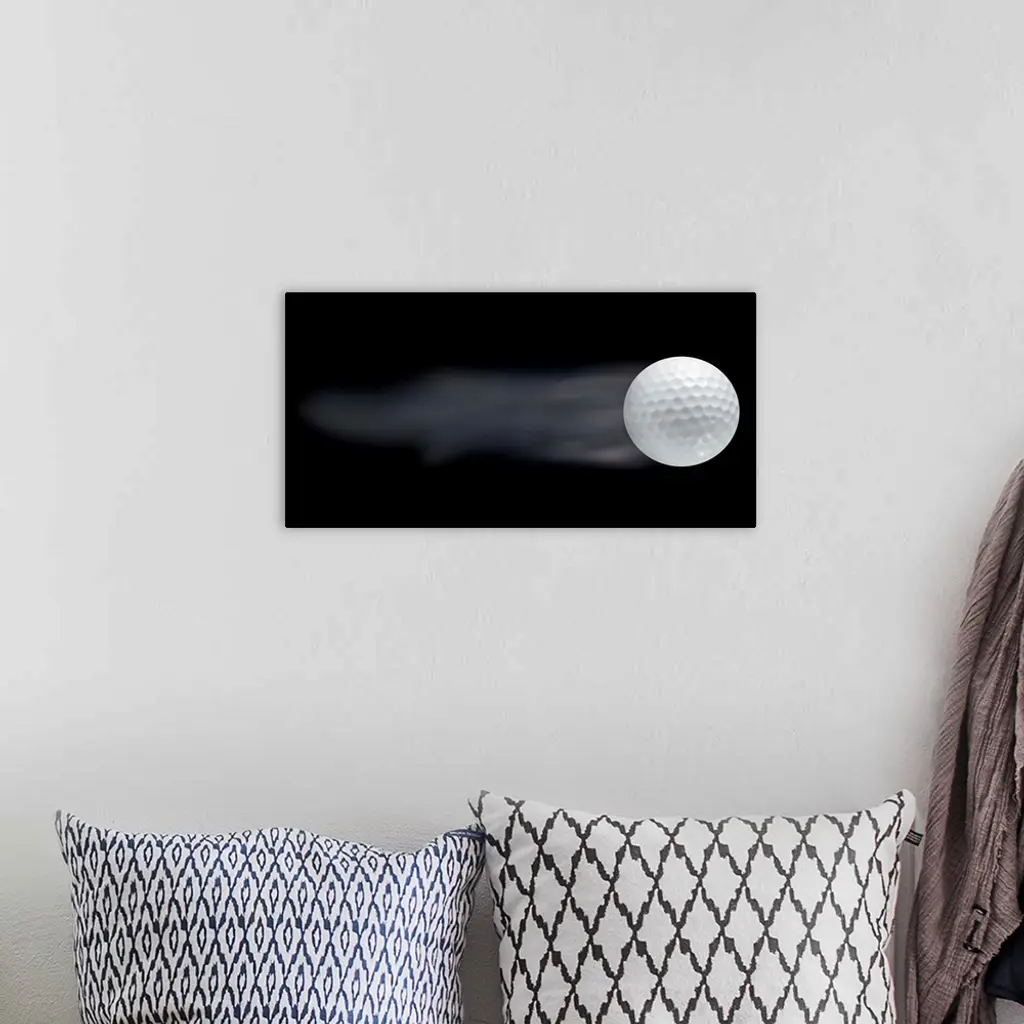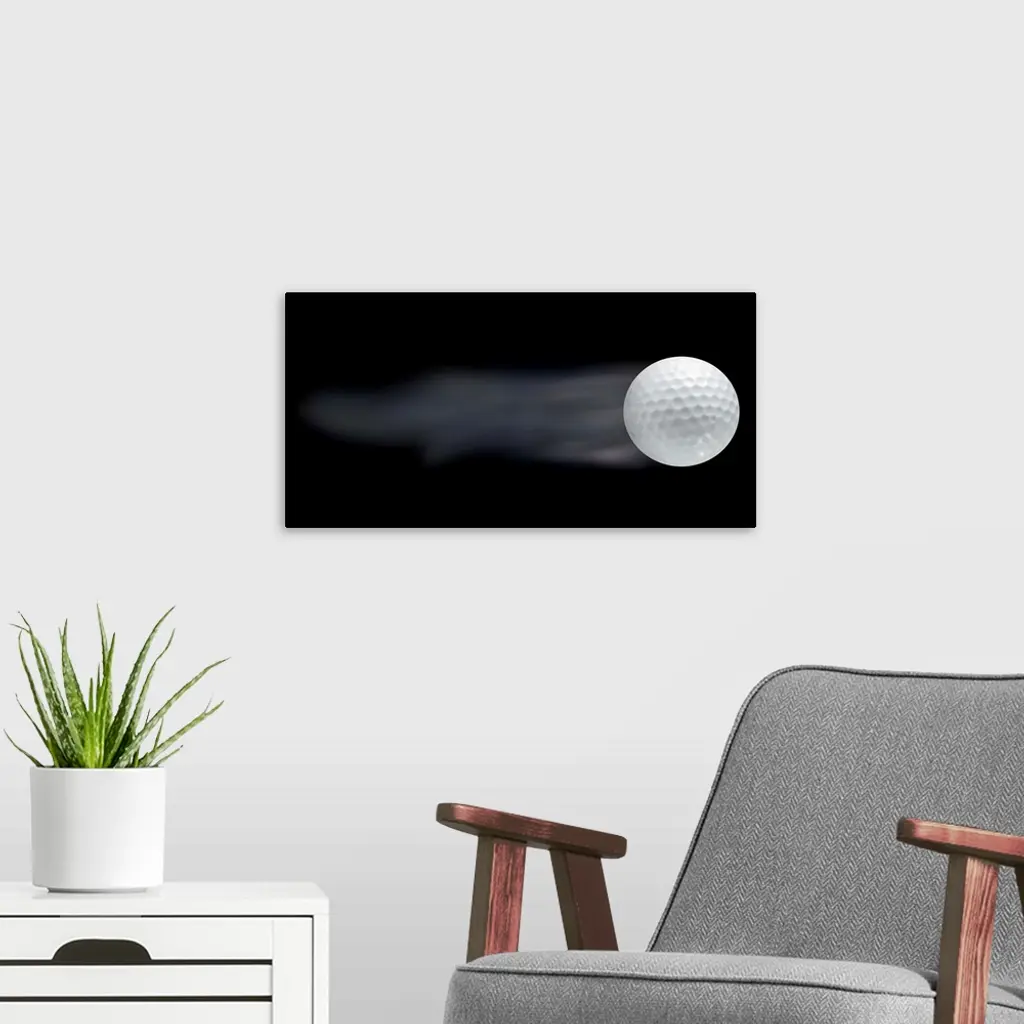 Golf ball leaving trails behind on black background