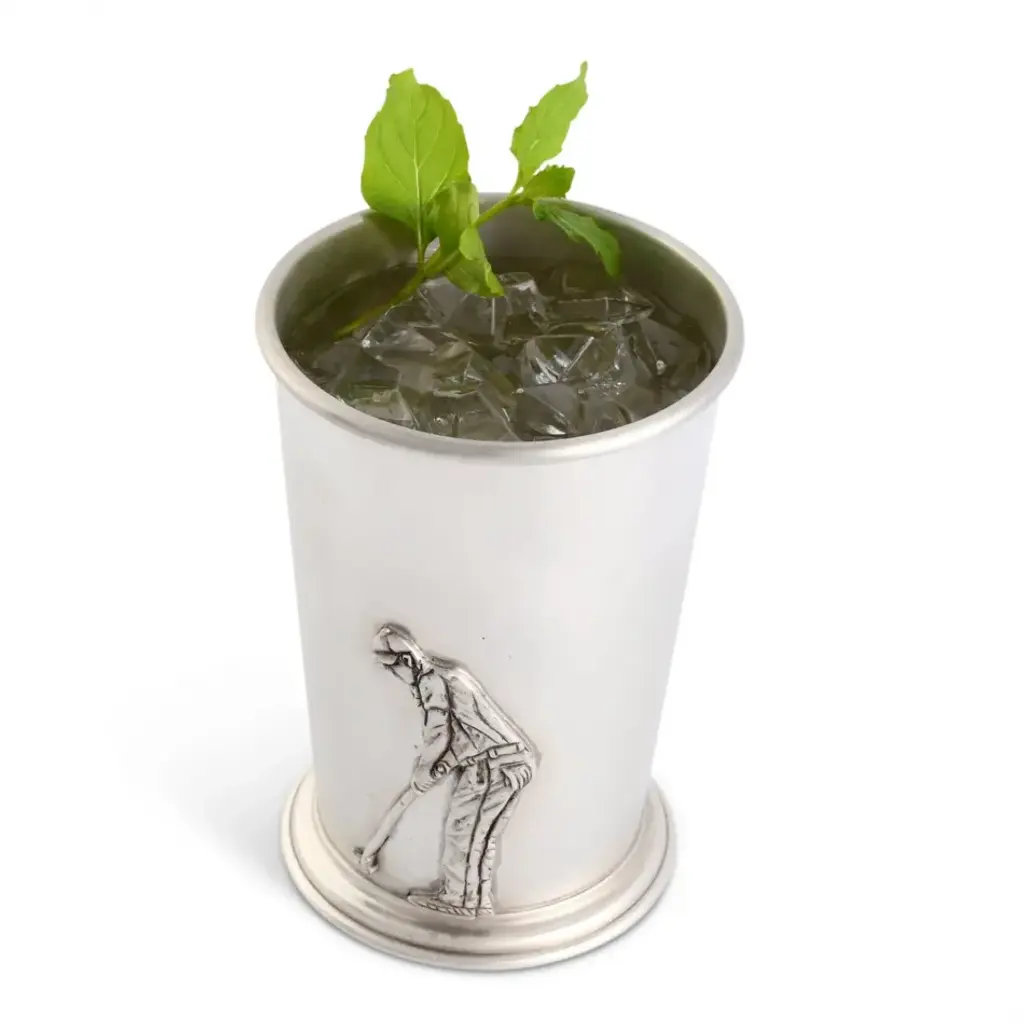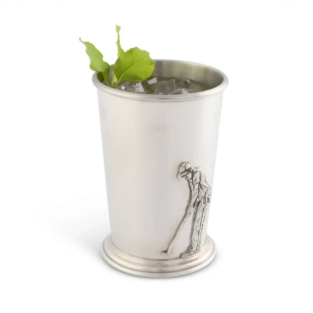 Embrace the elegance of drinkware with our Pewter Golfer Mint Julip Cup. Sip your favorite beverages in style, whether at a festive cocktail party or a tranquil evening at home. The premium pewter material keeps your drink cool and refreshing, whilst the distinct golf design sparks conversations. With a generous size of 4.5 Inches tall and 8 oz capacity, it serves just the right amount of your beverage to keep the spirit alive. Vagabond House is a family-owned American company specializing in fine pewter tableware, servingware and giftware. Largely inspired by nature, their exclusive products are designed to be unique, functional heirlooms for those who seek to express tradition and style in both family and formal entertaining.