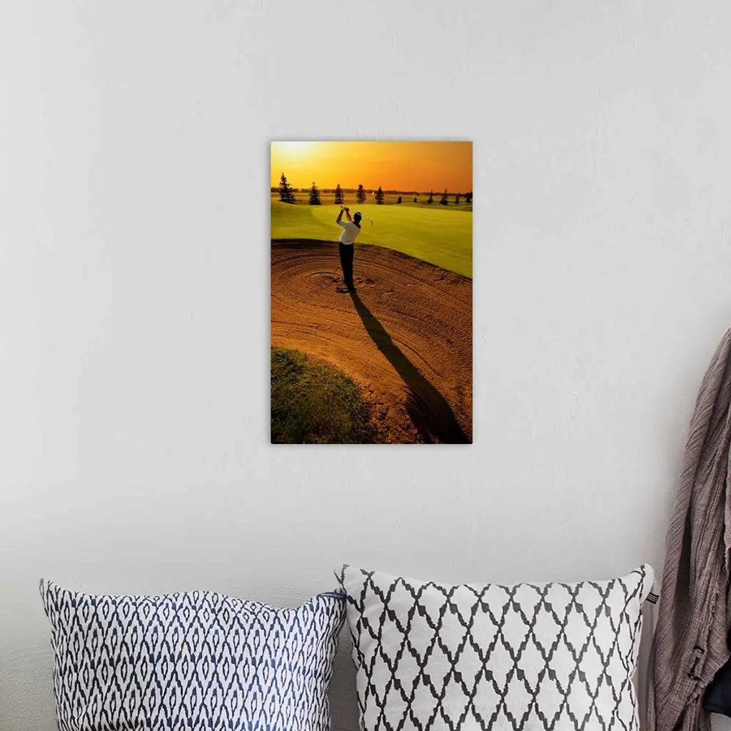 Golfer Taking A Swing From A Golf Bunker wall art for home and office decor. Discover canvas art prints, photos, mural, big canvas art and framed wall art in GreatBigCanvas.com's varied collections.