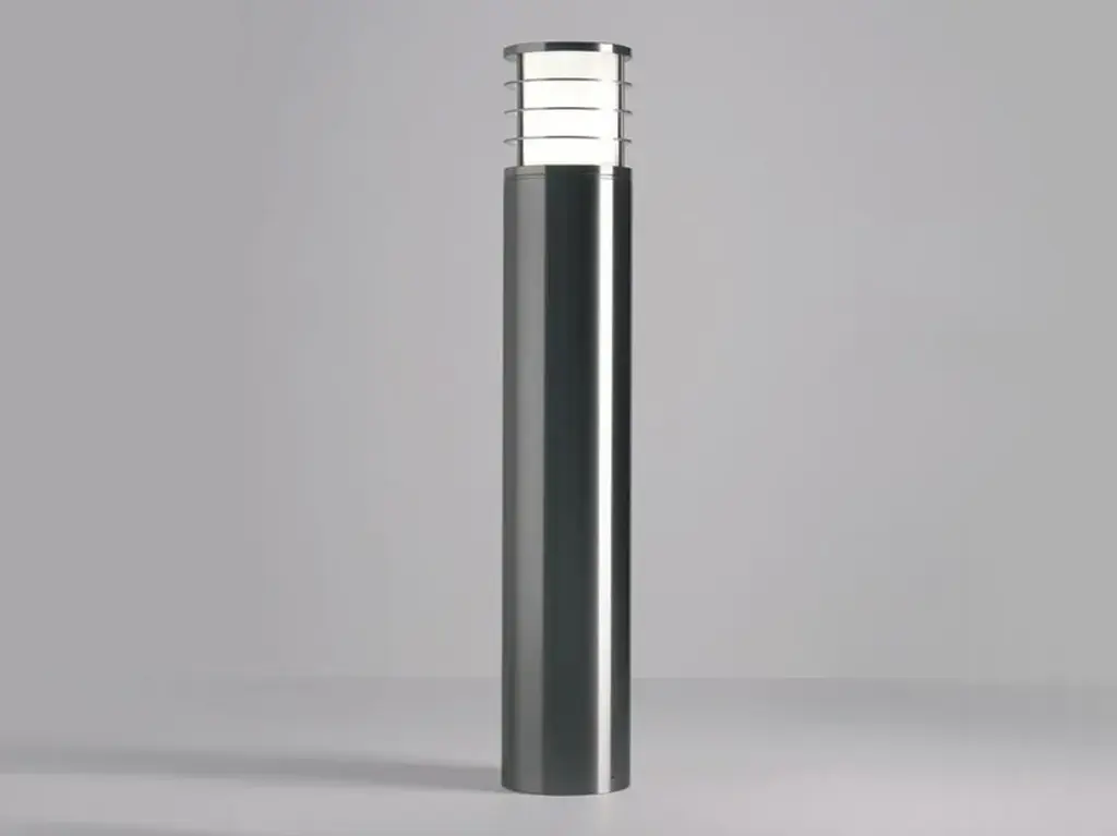 Goliath R is a directional diffusion bollard, a modern and robust luminary that is made in anodized aluminum. Fixture to be placed on the ground, it can use an LED, halogen or economic fluorescent lamp. This quality bollard is manufactured by machining process, the combination of aluminum and frosted glass gives contemporary aesthetic to this fixture. This is an attractive solution for many outdoor applications.Technical featuresGoliath R E27/Led 230V-Ano. AluIP65