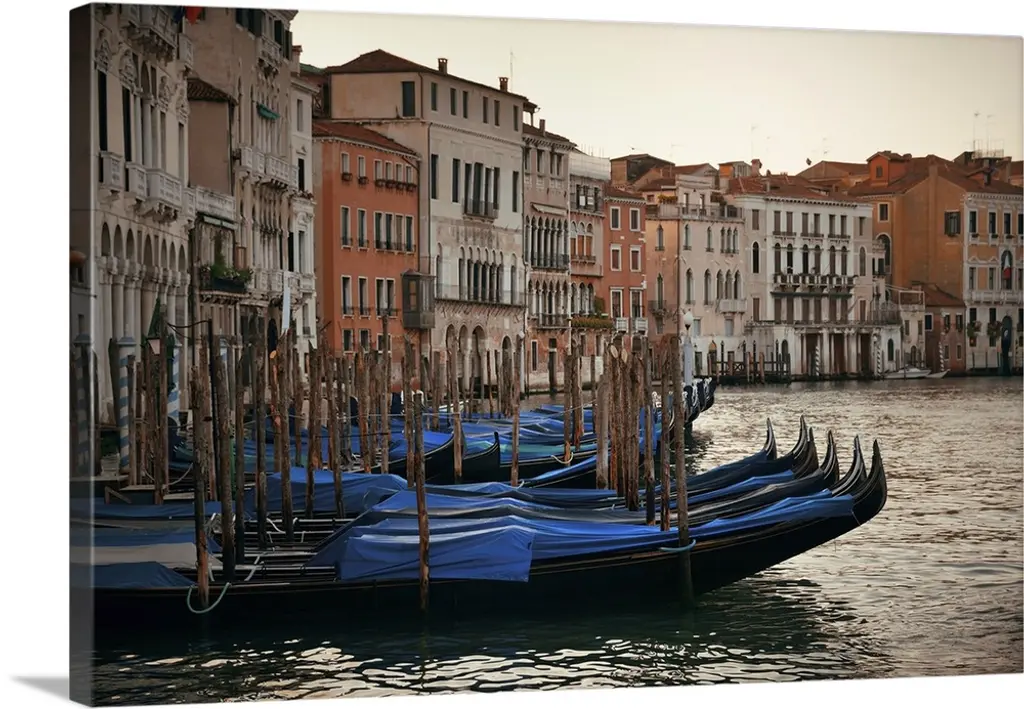Gondolas at sunset in Venice, Italy