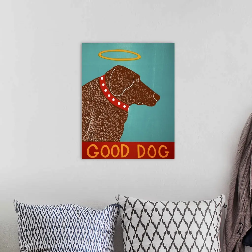 Illustration of a chocolate lab with a halo and the phrase "Good Dog" written at the bottom.