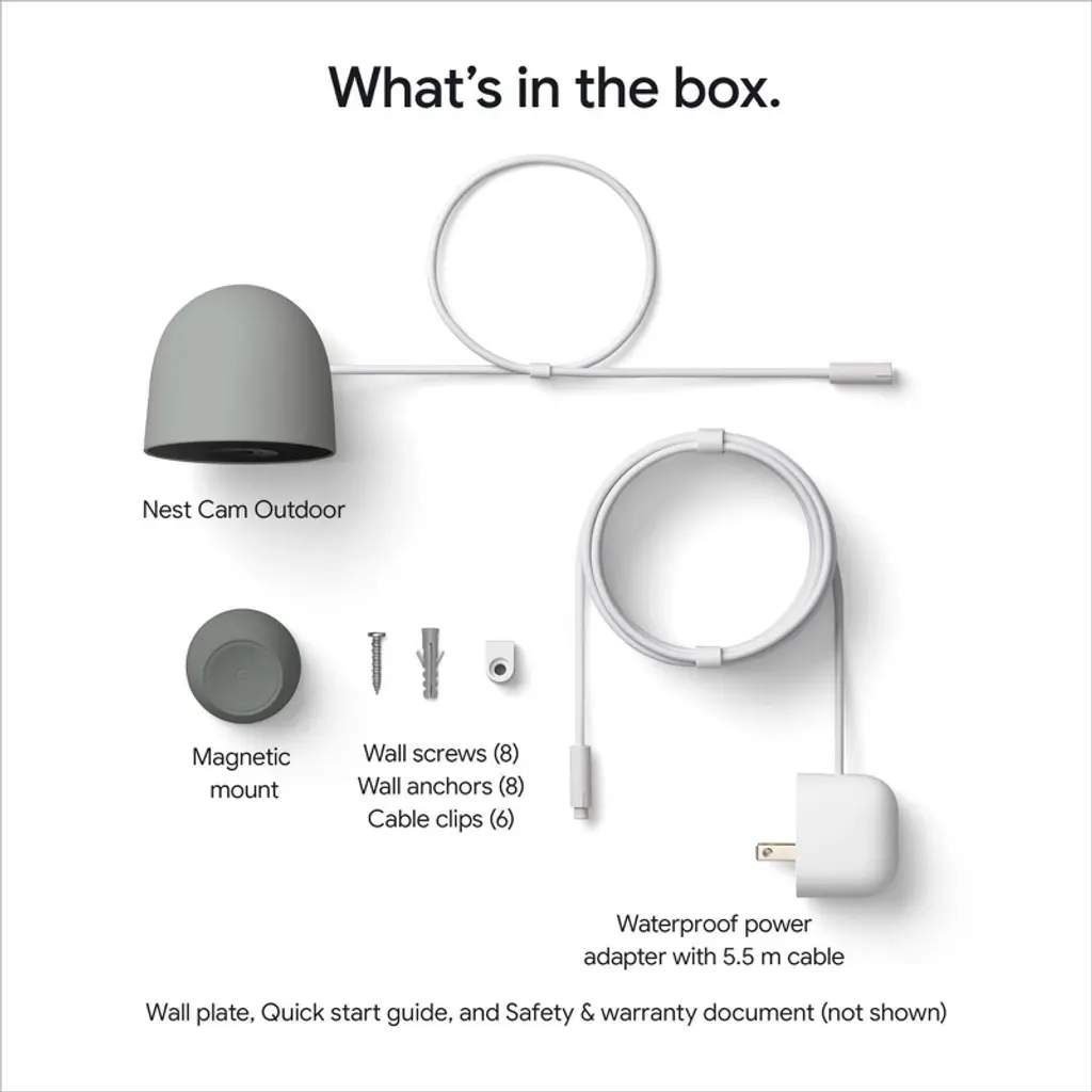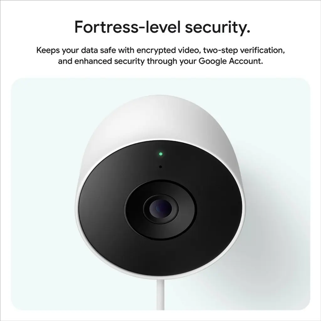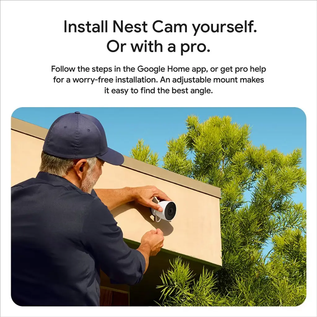 Meet the smarter, sharper wired Nest Cam Outdoor with 2K video and Gemini. Get more peace of mind about the things that matter with the intelligence of Google Home. It provides more details, summarizes what happened, and lets you search video history simply by asking for something.1,2,3 1 Compared to earlier Nest Cam models.2 Availability of 2K resolution is dependent on Wi-Fi and network strength, and requires connectivity speed of at least 3.3Mbps.3 Requires Google Home Premium Advanced plan (sold separately), Google Home app, Wi-Fi, and internet connection. Features subject to change; available in select countries and languages. Gemini features work independently of Gemini apps. Check responses for accuracy; results may vary.