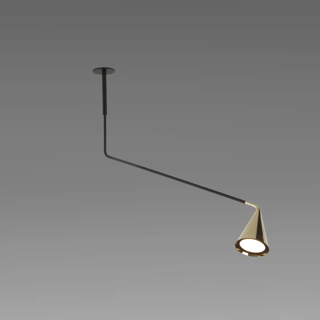 A new formal and material interpretation of the conical diffuser is the main feature of GORDON lamps. The essential and refined aspect with a strong character that is conferred by the shape of the brass casting; these practical and versatile lamps are suitable to be used in different environments, from the domestic to the working one as in the commercial spaces and ‘hospitality’.