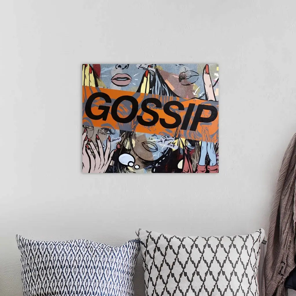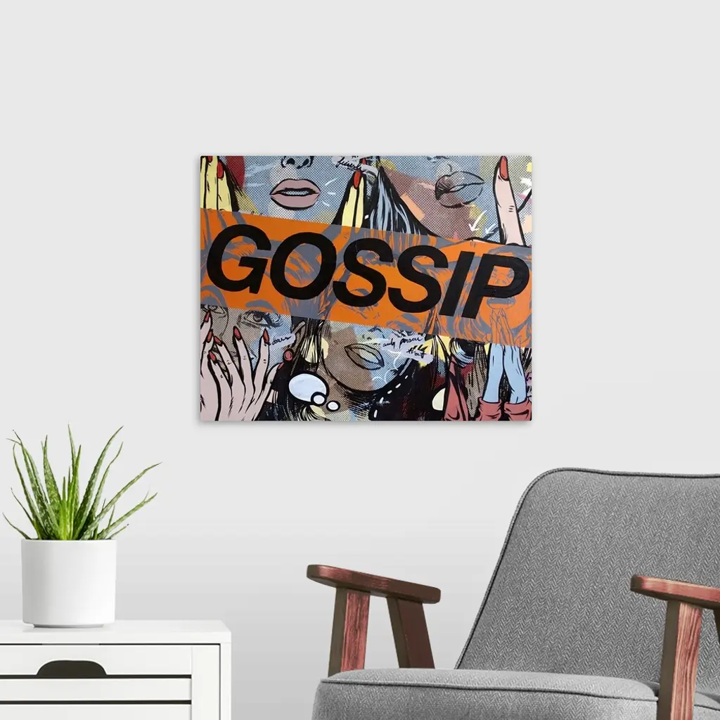 Pop art composed of comic illustrations and bold text, reminiscent of Lichtenstein.