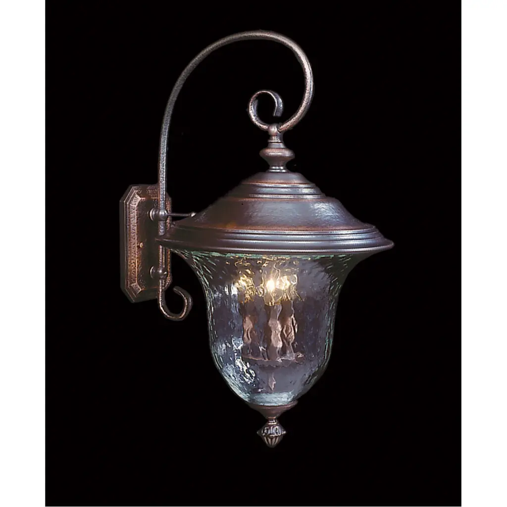 Elevate your outdoor aesthetics with the Santa Barbara Outdoor 3-Light Medium Wall Bracket, a hallmark of Gothic style and superior craftsmanship. Inspired by the historic architecture of Mexico''s Mission Churches and Cathedrals, this stunning fixture is part of Kalco''s esteemed Santa Barbara Collection, bringing a touch of old-world charm to your modern exterior. Handcrafted in a durable aluminum structure, the wall bracket is adorned with a luxurious Burnished Bronze finish. Its Clear Seeded Hammered Glass shades are not only a visual delight but also enhance the ambiance with their magical diffusion of light. The Gothic flair is perfect for those wishing to add a statement piece with historical importance to their façade. Engineered for durability, this fixture has a cETL-Listing and a Wet Rating, making it a reliable choice for outdoor use in various climates. It uses three E12 Candelabra bulbs to cast a warm, inviting glow, which adds depth and warmth to your evenings. - Dimensions: 23H x 13W x 15D inches - Condition: New - Color: Burnished Bronze - Material: Aluminum - Collection: Santa Barbara Outdoor - Bulb Base Type: E12 Candelabra