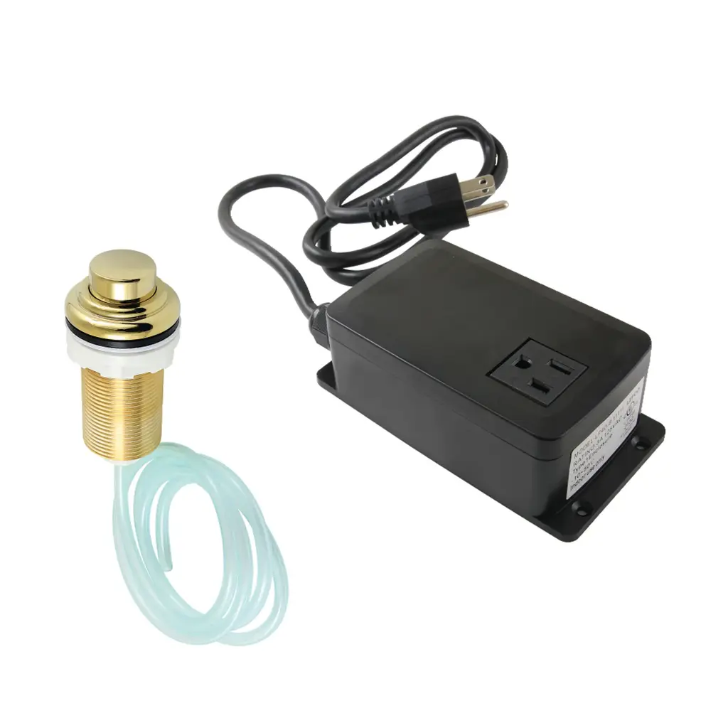 The disposal air switch button from Gourmetier is a convenient and stylish means to activate your disposal. The button, which can be mounted to the sink or the countertop, connects to a hose which plunges air activating the disposal. The brass button is available in a multitude of finishes (Chrome, brass, bronze, nickel) to complement the finish of your faucet and/or surrounding decor. This air switch kit includes: air switch button, air tube, and single outlet power module.FeaturesFabricated from solid brass and ABS material1-11/32" O.D. tailpieceButton size: (L)1-3/4" x (W)1-3/4" x (H)13/16"Overall height: 3-11/16"Sold as a replacement to your existing air switch to any units with a 1/4" air hose connectionSafe, high profile air switch to operate your garbage disposalIncludes power moduleIncludes 39-3/8" plastic hoseEasy installation save you time and effort