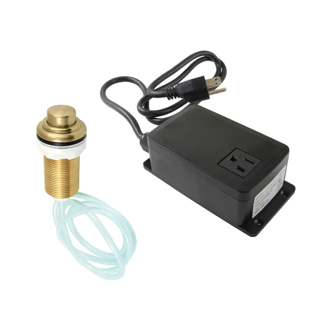 The disposal air switch button from Gourmetier is a convenient and stylish means to activate your disposal. The button, which can be mounted to the sink or the countertop, connects to a hose which plunges air activating the disposal. The brass button is available in a multitude of finishes (Chrome, brass, bronze, nickel) to complement the finish of your faucet and/or surrounding decor. This air switch kit includes: air switch button, air tube, and single outlet power module.FeaturesFabricated from solid brass and ABS material1-11/32" O.D. tailpieceButton size: (L)1-3/4" x (W)1-3/4" x (H)13/16"Overall height: 3-11/16"Sold as a replacement to your existing air switch to any units with a 1/4" air hose connectionSafe, high profile air switch to operate your garbage disposalIncludes power moduleIncludes 39-3/8" plastic hoseEasy installation save you time and effort