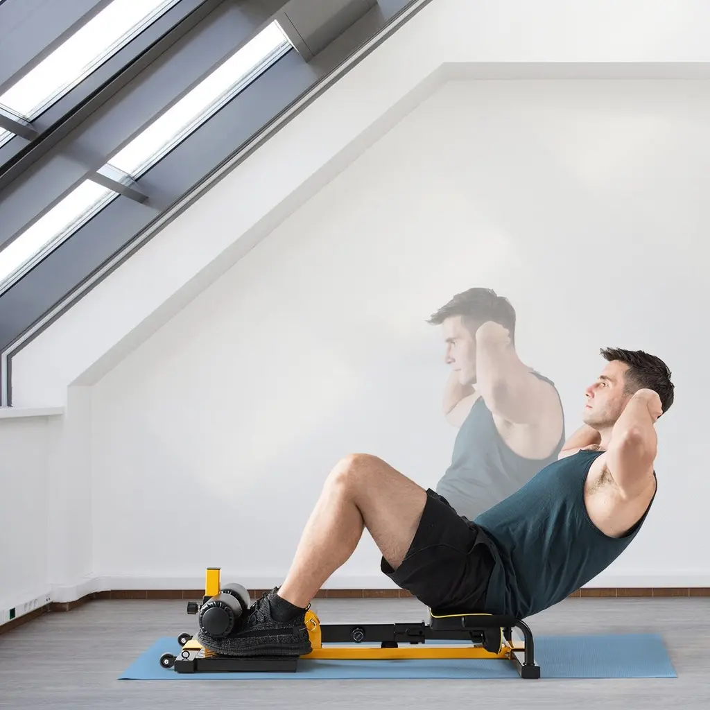 This 8-in-1 multifunctional fitness trainer will provide a core workout training to your body. It is ideal Body Trainer for sit-up, back exercise, push-up and flat support to greatly exercise your abdomen, leg muscles and gluteus. With the load-bearing of 265 lbs, this squat is sturdy, sturdy and hard to deform or shake. Bottom is designed into T-shape to ensure its stability. Adjust the heights of the cylinders and mat with the knobs to meet the different people's needs. Ergonomic leg cushion with PVC+PU cover supports your legs softly to make sports more comfortable. 4 enlarged foot pads at the bottom will prevent skid and protect the floor. Slipping can be effectively prevented due to the non-slip handles and the front pedal. Two wheels in the front will help girls move it easily without much effort. And it can be stored or cleaned very easily. Get one of these sissy squat to maintain a good body shape!Feature8-in-1 sissy squat combines a variety of core training functions, suitable for home gym Perfect to exercise abdomen, leg & arm muscles, quadriceps and gluteus Thickened iron squat with 265 lbs load-bearing is stable and sturdy enough for long time use T-shape bottom design to prevent turning over when you are dong exercises 11 Levels height adjustable up to 11.5'' for people with different height requirement Ergonomic cushion with PVC+PU cover to support your legs comfortably 4 enlarged non-slip foot pads will increase friction as well as protecting the floor Non-slip handles and anti-skid front pedal strengthens its stability and safety Users could move it easily due to the convenient wheels in the front Can be kept into a small size for storage or wiped very easilySpecificationColor: Black + Yellow Material: Iron + PVC + PU Maximum Weight of User: 265 lbs Overall Dimensions:38 '' X 16.5'' X 18.5-30'' (L X W X H) Cushion Size:16'' X 7.5'' (L X W) Net Weight: 29.5 lbs Package includes: 1X Sissy Squat 1X Instruction Manual