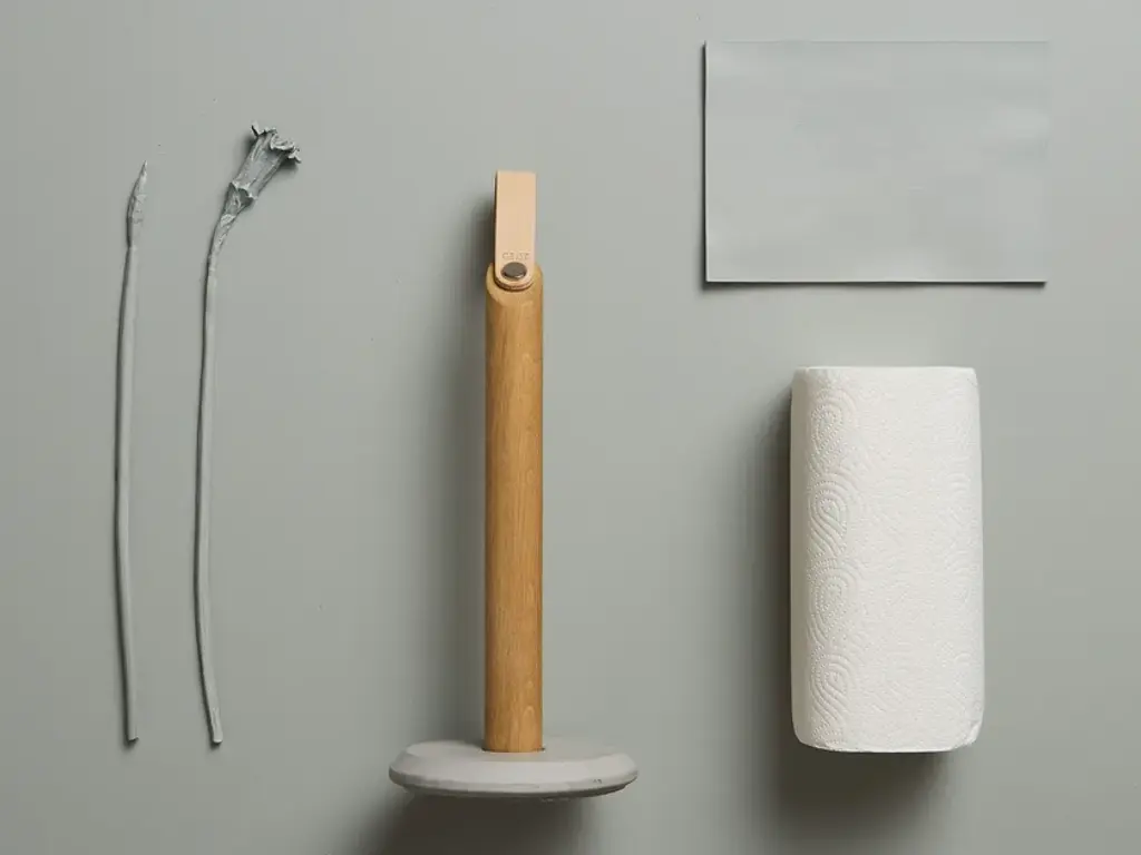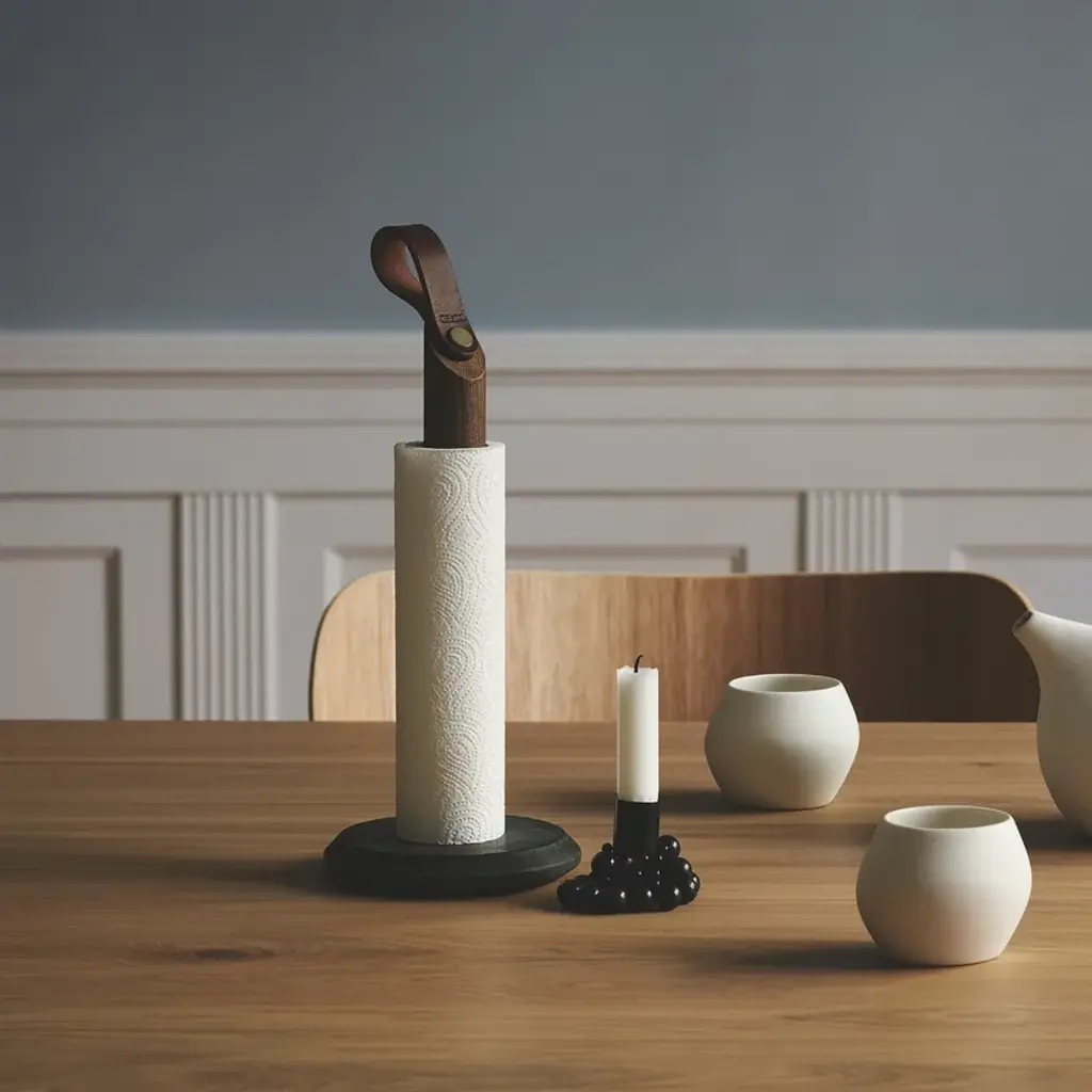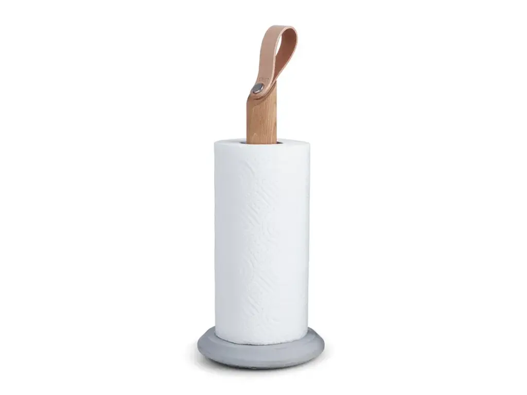 Beautifully designed and crafted, GRAB combines genuine high quality materials with exceptional Scandinavian design to create a kitchen roll holder that takes pride of place on your table or in the kitchen. Rather than being hidden away, GRAB turns the kitchen roll holder into a design element that demands to be seen.With a raw industrial feel, GRAB combines leather, oak and concrete and celebrates the delicate interplay between these elements. A solid concrete base gives GRAB a weighty feel which keeps it steady on the table and adds to a strong sense of its Nordic design heritage with a rough stone like expression.Even when the kitchen roll itself is all gone, GRAB makes an eye catching design piece standing alone on the table. Designed for functionality and with a focus on details, GRAB has been stripped down to its essential parts with no extra superfluous decorations, resulting in a raw and exciting object.GRAB is available in light and dark variants and includes small felt pads on the concrete base to ensure it is scratch proof.