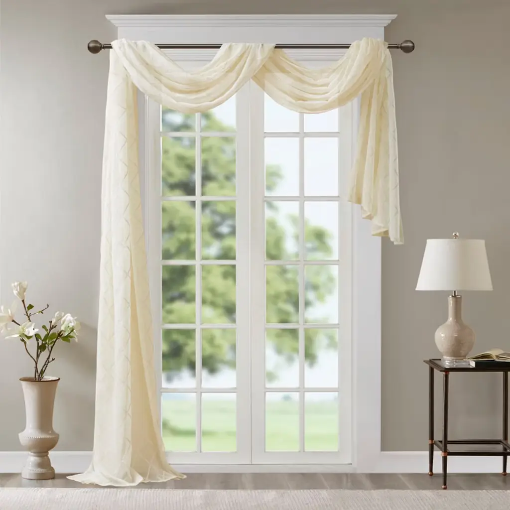 Gracie Mills Cyprian Diamond Embroidered Lightweight Sheer Window Scarf - One Size - Ivory