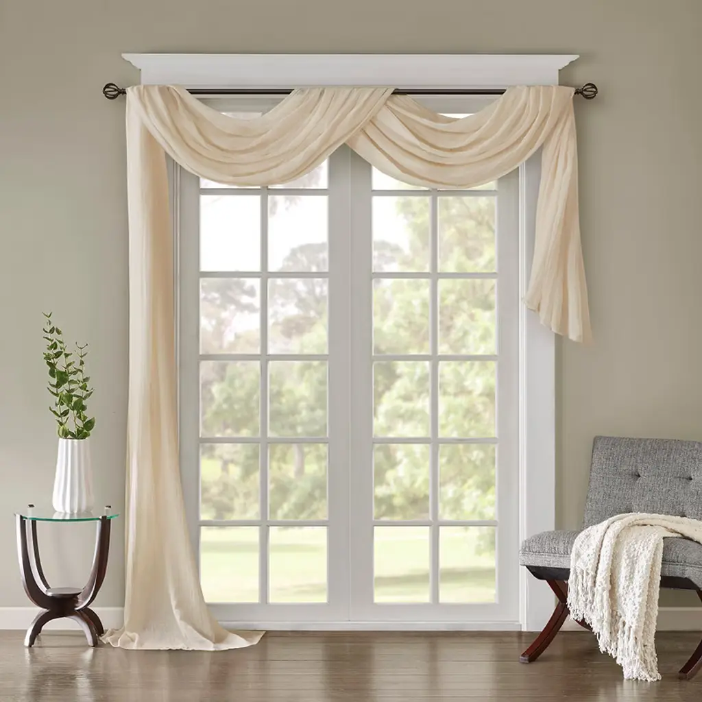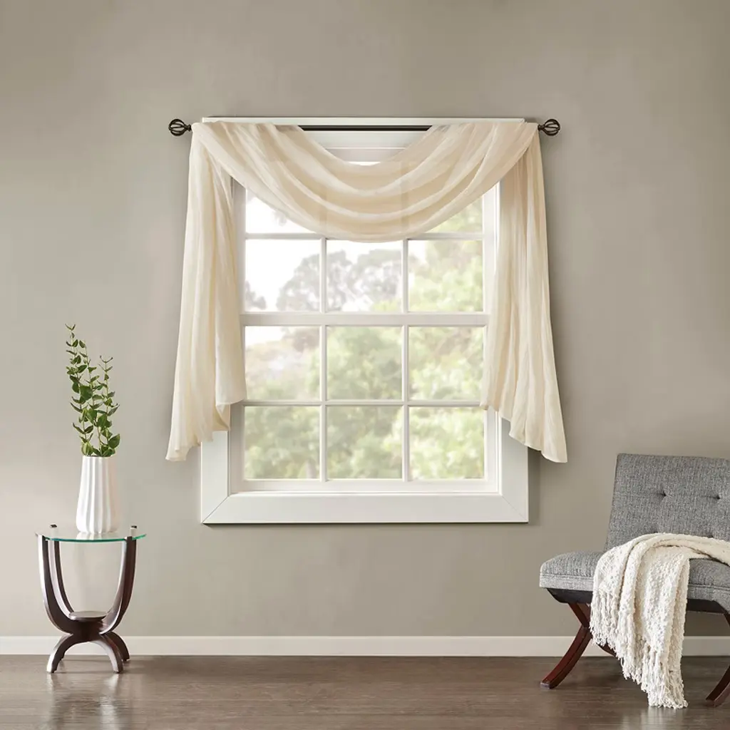 Gracie Mills Gayle Lightweight Crushed Sheer Window Scarf - One Size - Cream