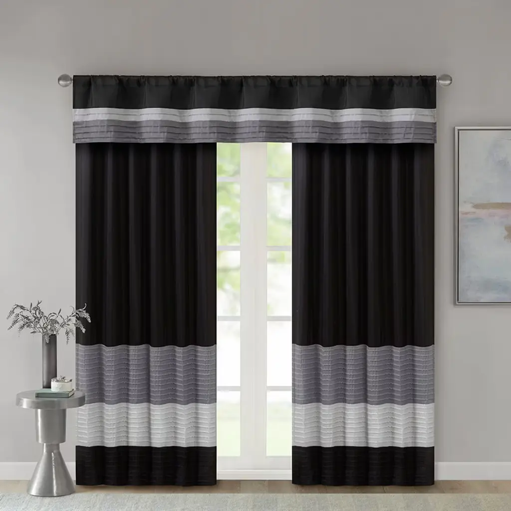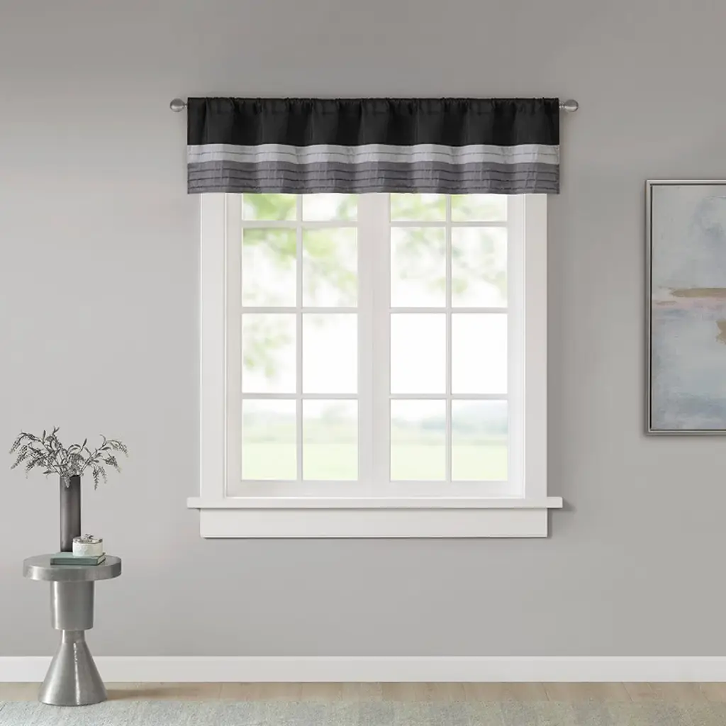 Gracie Mills Nixon Polyoni Pintuck Rod Pocket Window Valance - One Size - Black