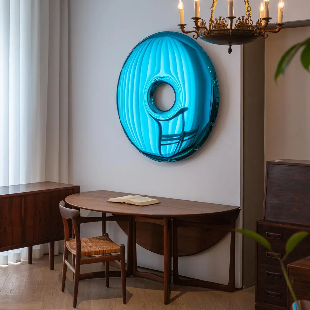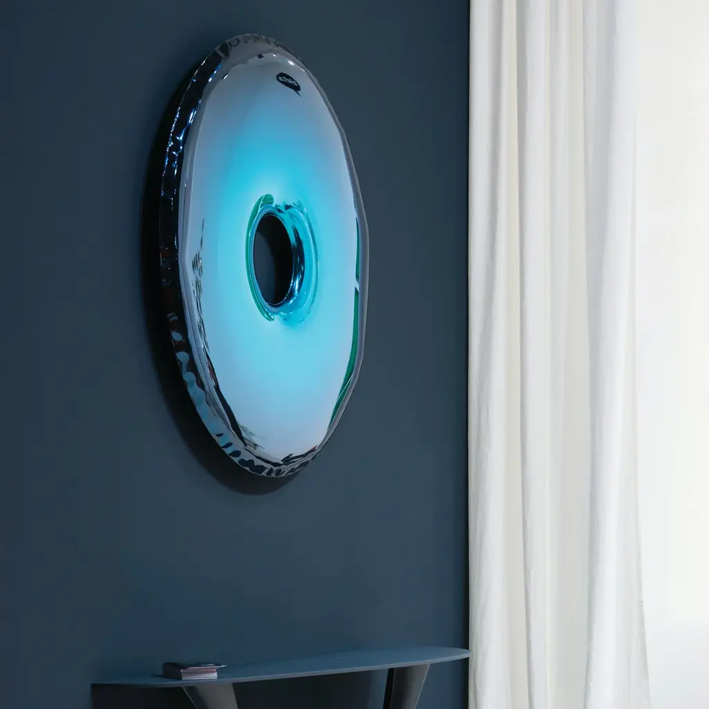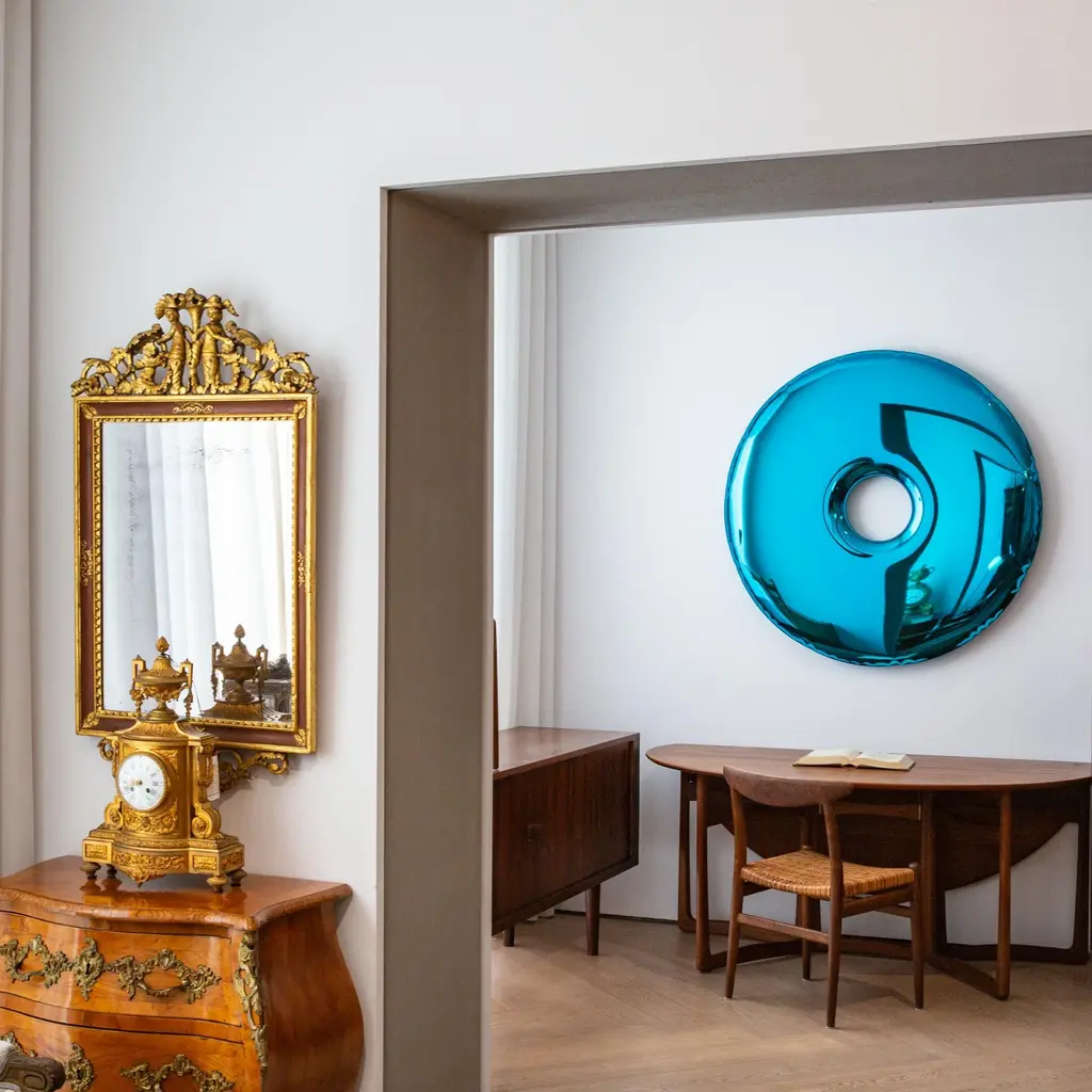 With soft transitions between multiple hues, the Gradient version of Rondo is coated with a special lacquer to create colors with exceptional depth and unparalleled reflective qualities. The stainless-steel wall décor takes form via Zieta’s unique technology, based on inflating sheet metal with compressed air. The flat plane is turned into 3-dimensional object, sculpted with air to its characteristic shape and polished to mirror gloss in a painstaking and time-consuming process that changes plain metal into mirror.