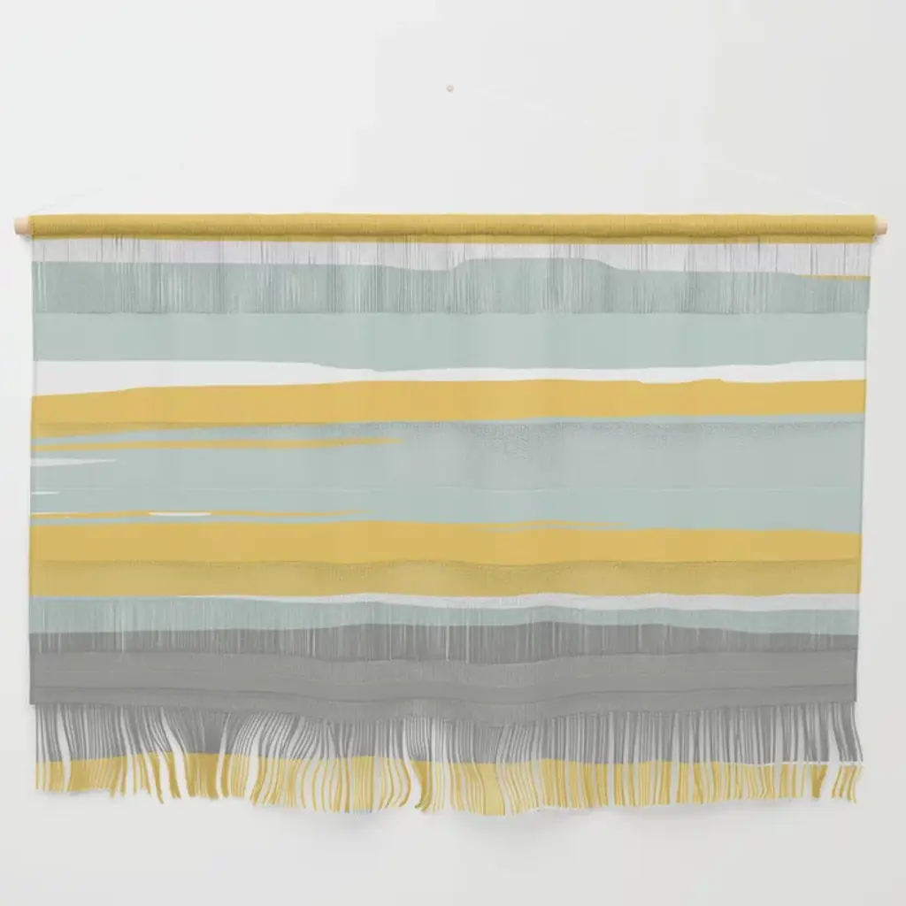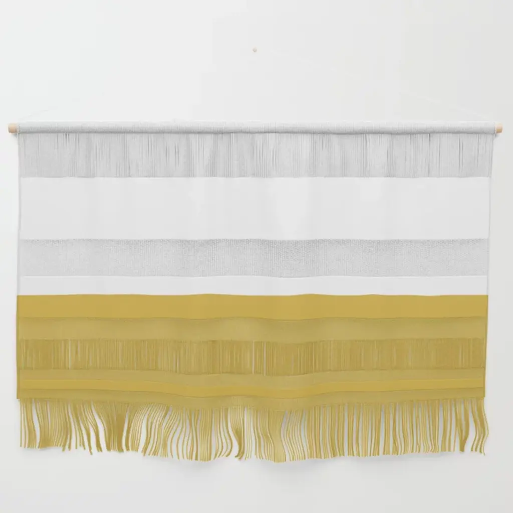 Gradient Stripes Minimalist Color Block In White, Navy Blue, Gray, And Mustard Wall Hanging