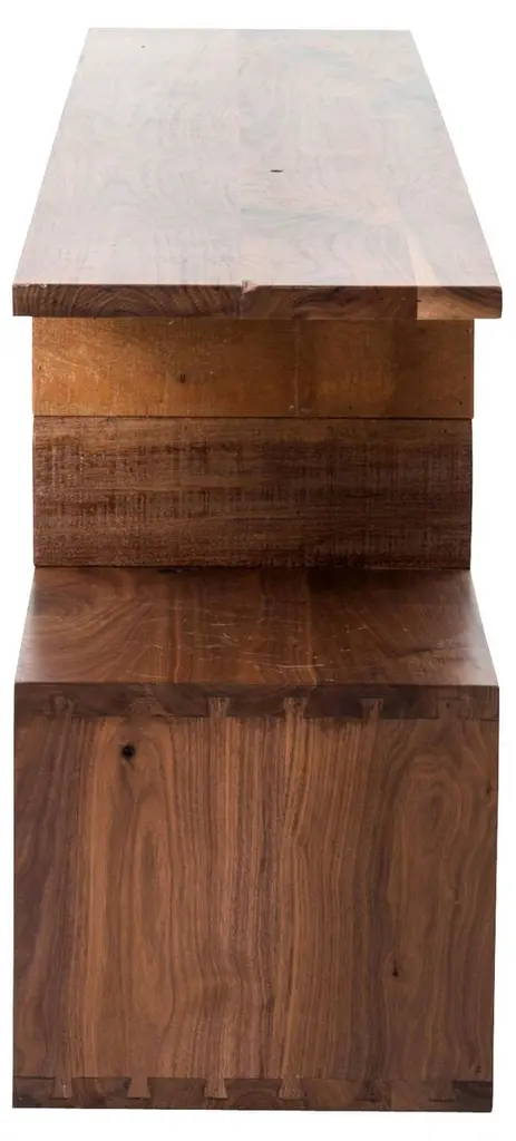 This console pairs two durable, beautifully figured hardwoods—walnut and peroba—to eye-catching effect. The dovetail joinery speaks to the craftsmanship involved.