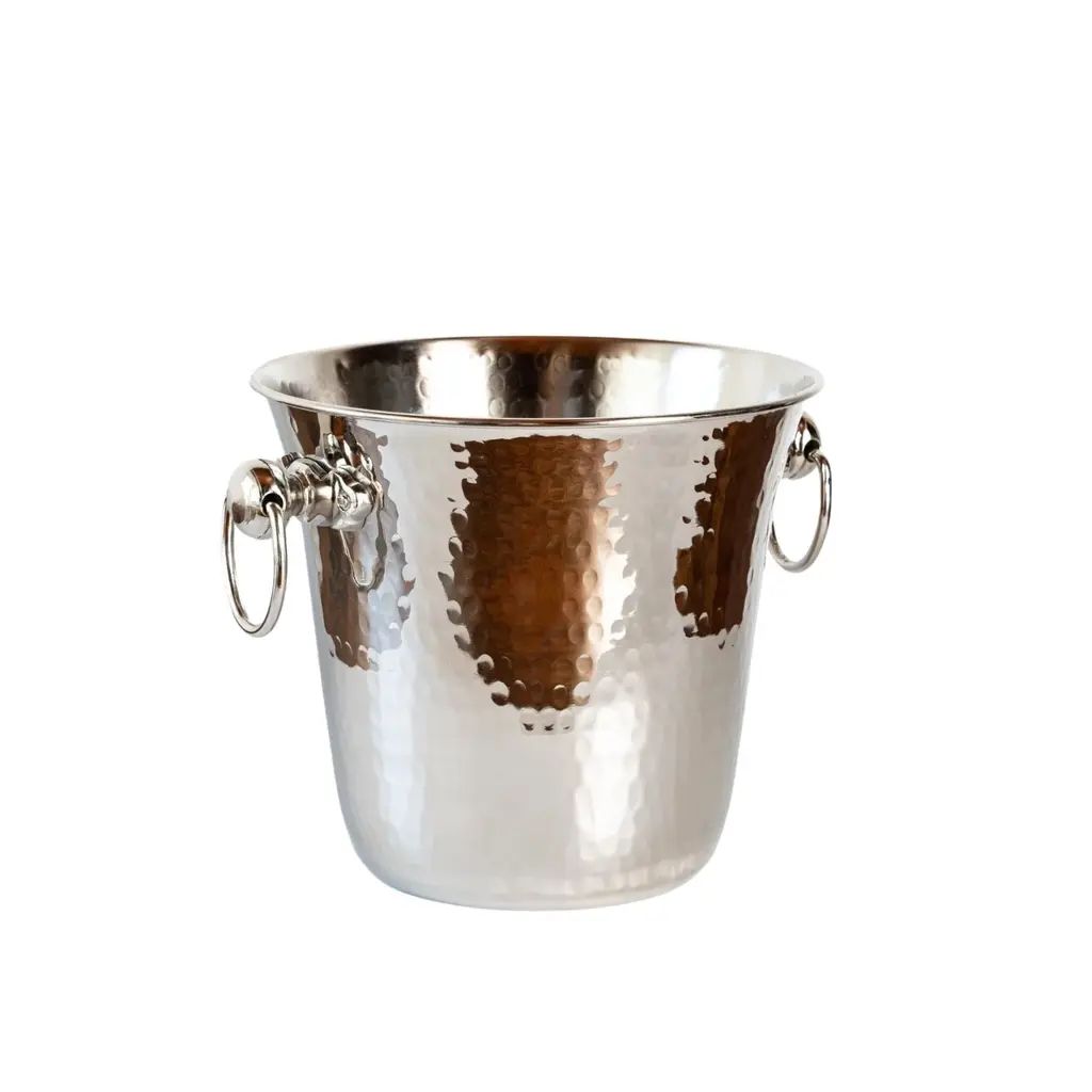 Designer Graham Reynolds masterfully mixes hand-hammered detail and a mirror-polished finish to craft this striking ice bucket. The sleek handle and lid add clean lines to the bucket's classic look. Double-walled construction keeps ice cold and reduces condensation.