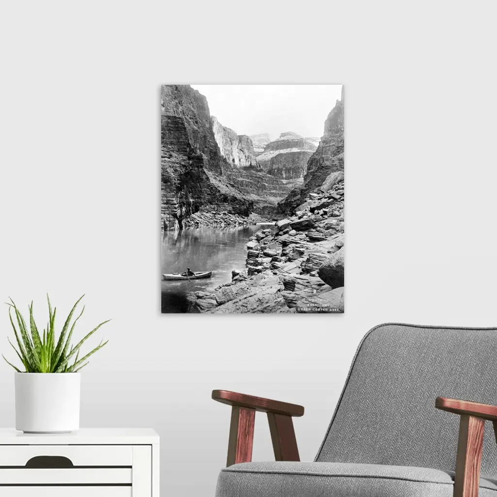 Grand Canyon, C1913. A View Of the Grand Canyon In Arizona, Showing A Man In A Boat On A River In the Foreground, And Snow-Capped Peaks In the Distance. Photographed By the Kolb Brothers, C1913.
