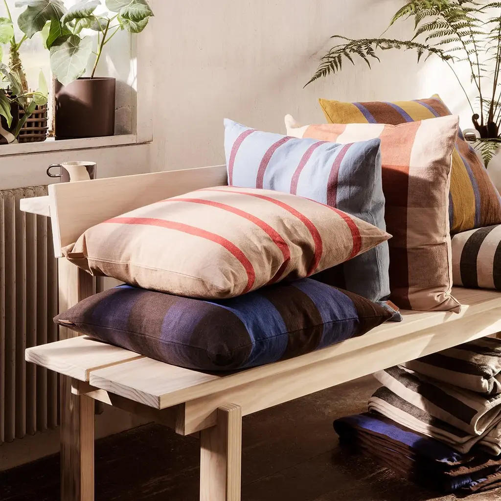 Made from a lovely mix of 50% natural linen and 50% cotton, the Grand Cushions offer an intriguing handfeel and confectionary of understated yet inspiring patterns and colour combinations. The various designs merge tradition with the contemporary, and lets you pair them together to suit any mood or setting.