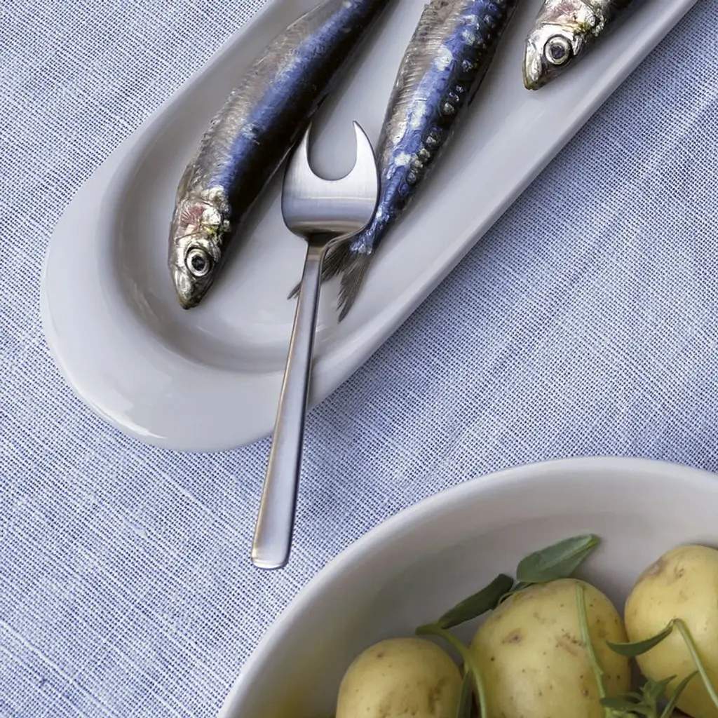 Kay Bojesen’s Grand Prix seafood set brings together elegance and functionality, making it the ideal choice for serving oysters, crabs, lobsters and other seafood treats. Crafted from polished stainless steel, the seafood cutlery set includes a total of 8 pieces: 4 oyster forks and 4 lobster forks. The Grand Prix cutlery collection is among the most renowned works of the iconic Danish designer Kay Bojesen. In the 1930s, Bojesen set out to create a versatile cutlery series suitable for hands of all sizes, perfect for both everyday use and special occasions, with the aim that these pieces could be passed down through generations as cherished heirlooms. At the 1951 Milan Triennial, his silver cutlery was awarded the first prize – the Grand Prix – and ever since, the collection has been known by this name. After the win, the cutlery was introduced in a matte steel version, and in 2011, the series was expanded with polished steel utensils.